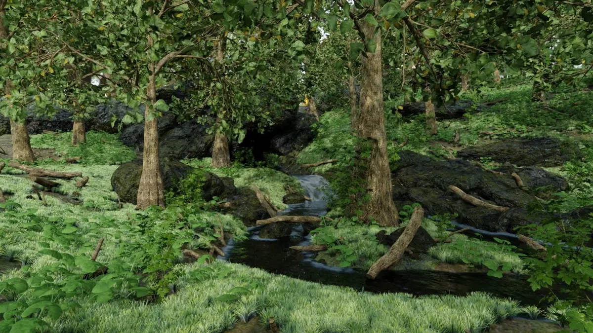Stream Scene Made In Blender3D v2.92. Waterfall is not a simulation