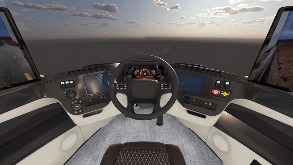 This semi-truck features a sleek and minimalist design with advanced aerodynamic contours that reduce drag, ensuring optimal fuel consumption. The cab offers a spacious and ergonomic interior, complemented by precision-crafted exterior details, including high-performance wheels, durable body panels, and cutting-edge lighting systems. Its trailer compatibility makes it a versatile choice for various transportation needs.
