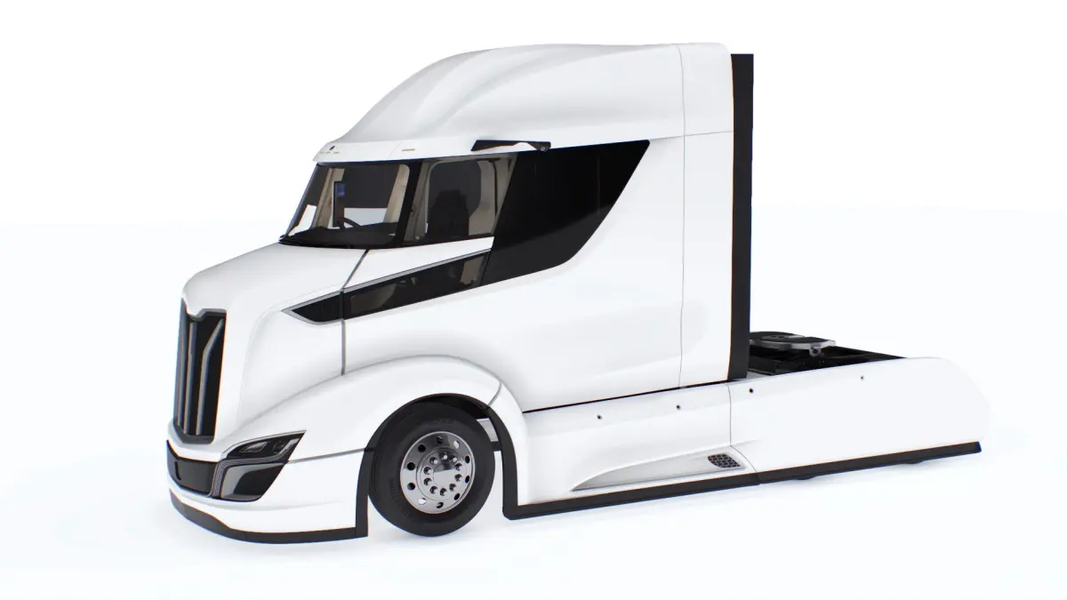 Crafted with a focus on aerodynamic performance and fuel efficiency, this semi-truck model features a streamlined cab design. Its elegant white finish complements the robust structure, which includes precise detailing such as headlights, side mirrors and large wheels.