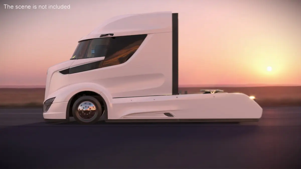 Streamlined Semi Truck White Rigged is a three-dimensional model of a modern semi-truck, designed for high-efficiency freight transport with a sleek and aerodynamic white exterior.
