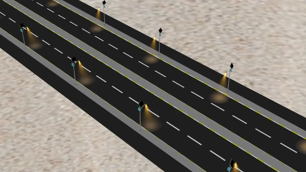 Solar street lights are lighting systems that use solar panels to collect and store sunlight during the day, converting it into electrical energy to power LED lighting systems at night. This renewable energy source is environmentally sustainable and cost-effective as it eliminates the need for grid-connected electricity supply.They are also ideal for public parks, parking lots, and pedestrian walkways, providing improved safety for pedestrians and motorists.A road is a thoroughfare for the conveyance of traffic that mostly has an improved surface for use by vehicles (motorized and non-motorized) and pedestrians. Unlike streets, whose primary function is to serve as public spaces, the main function of roads is transportation.A street light, light pole, lamp pole, lamppost, street lamp, light standard, or lamp standard is a raised source of light on the edge of a road or path. Similar lights may be found on a railway platform.