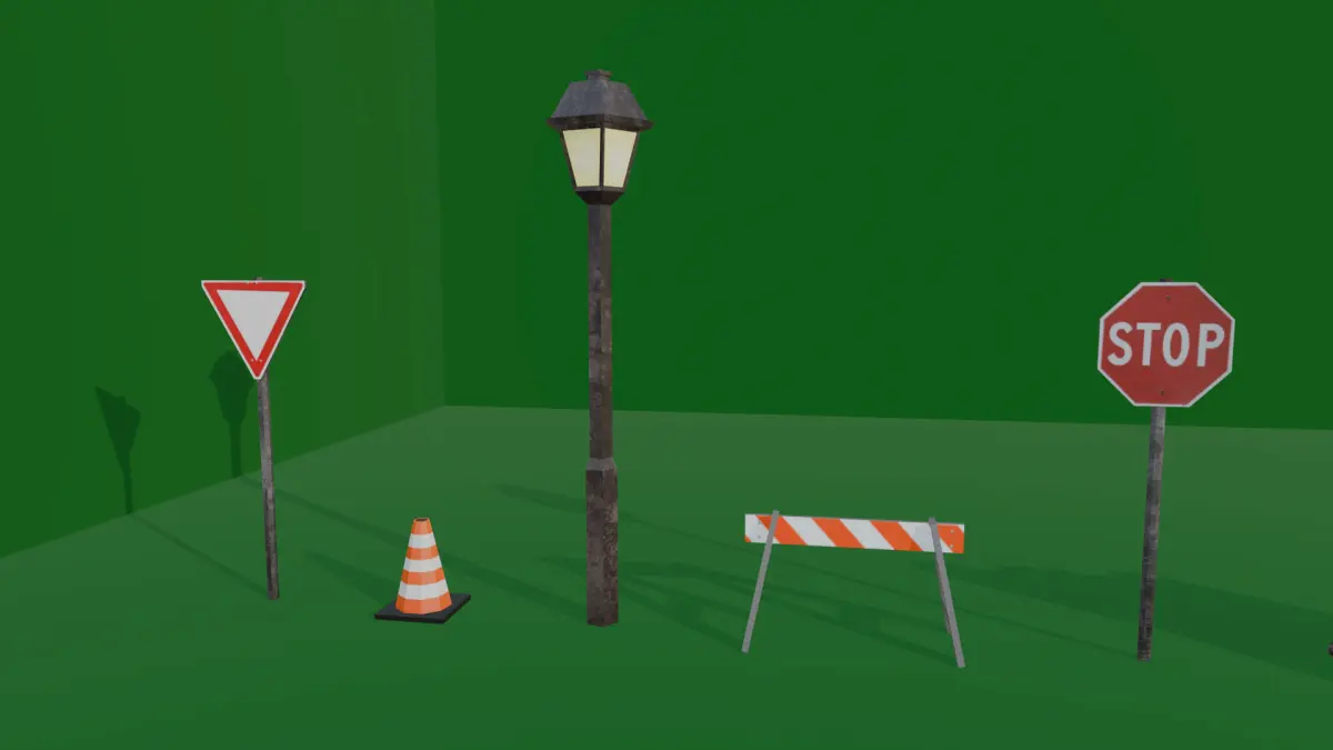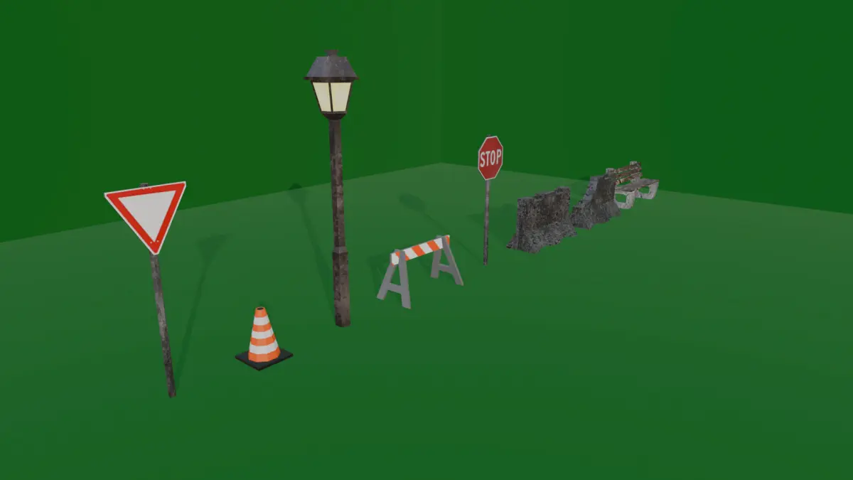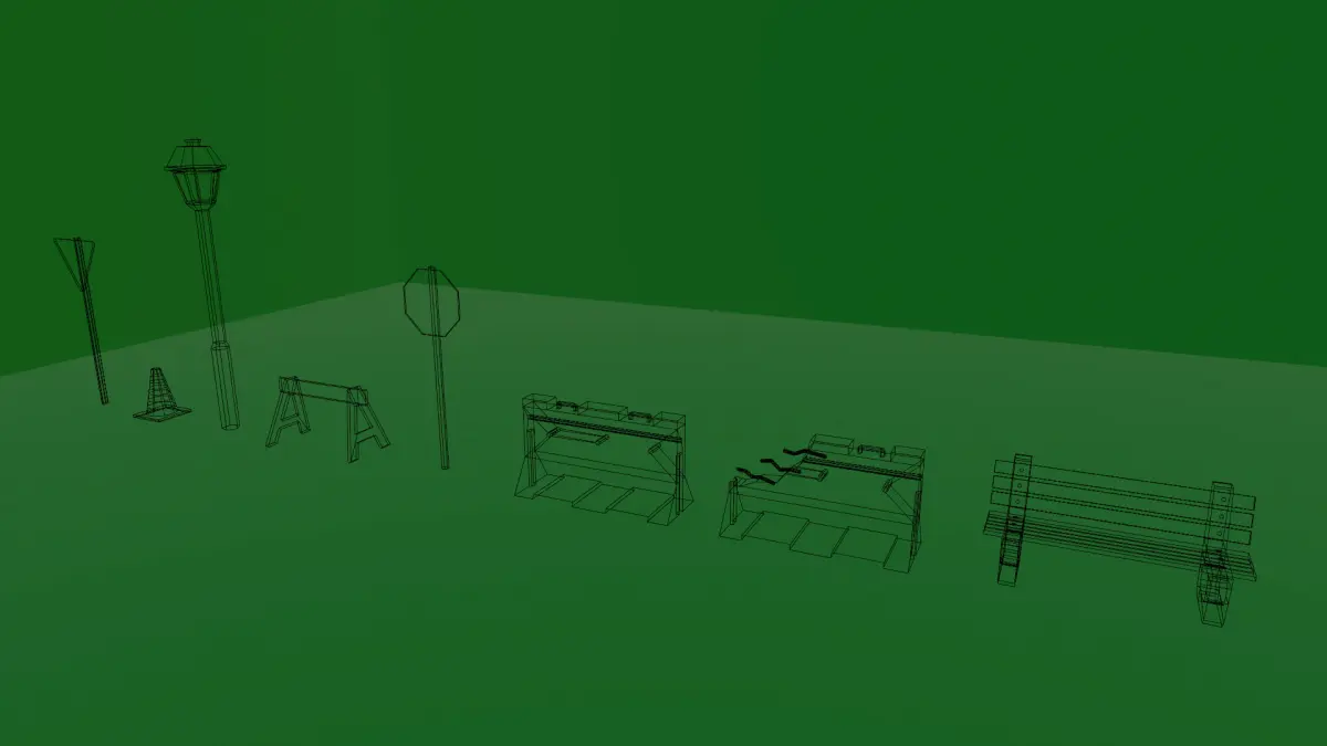 Multiple low-poly models of a variety of street assets with a pixelated texture. Perfectly suited for nearly any setting, a suburban environment or to achieve a retro PS1 / low-poly artstyle for your game.