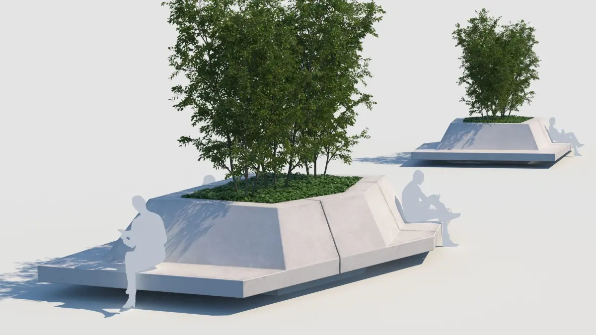architecture bench street element park grids grate furniture plant tree animated looped