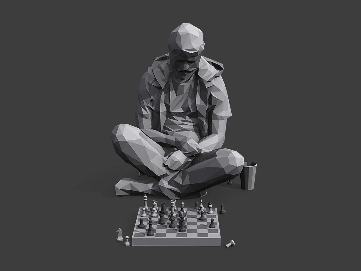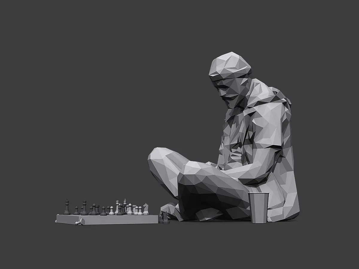 Lowpoly “Street Chessplayer” 3d scene ready for Virtual Reality (VR), Augmented Reality (AR), games and other real-time apps.