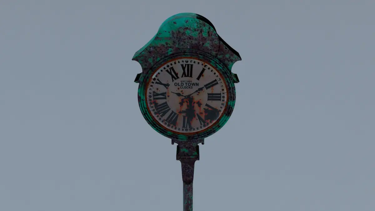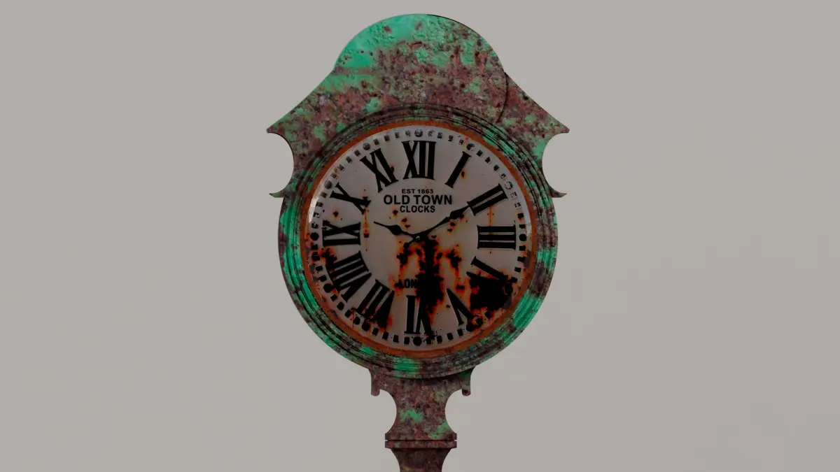 Rusted old street clock already textured, with high and low poly version.