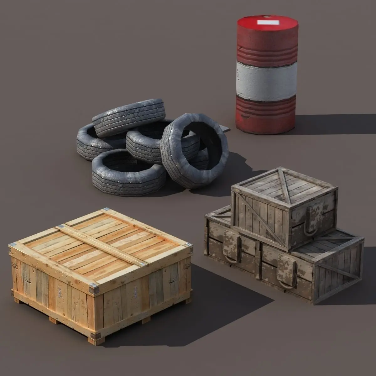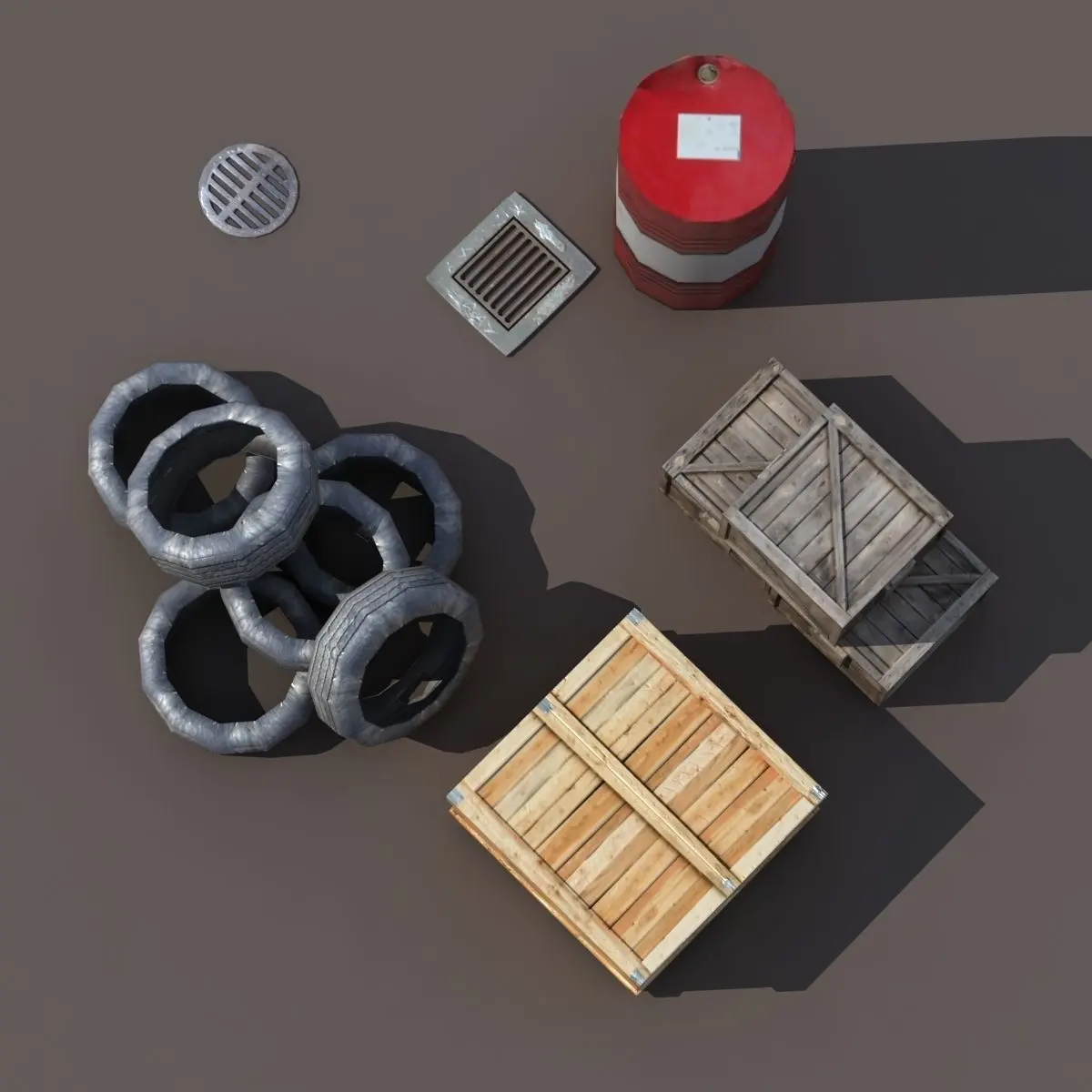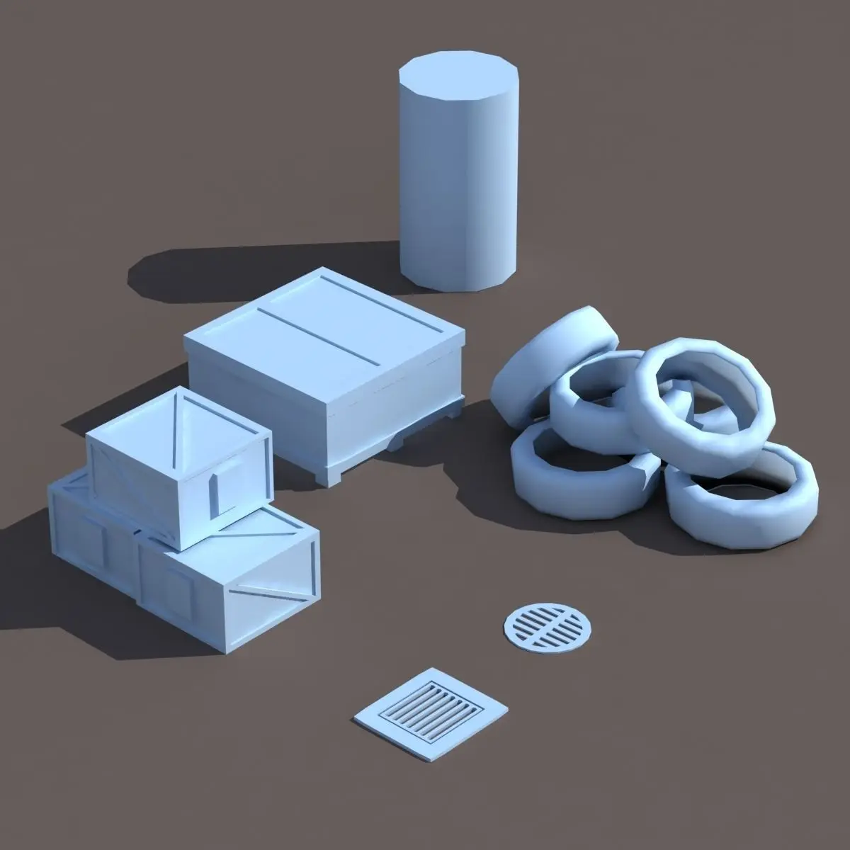 A 3D model of a low poly street elements collection.