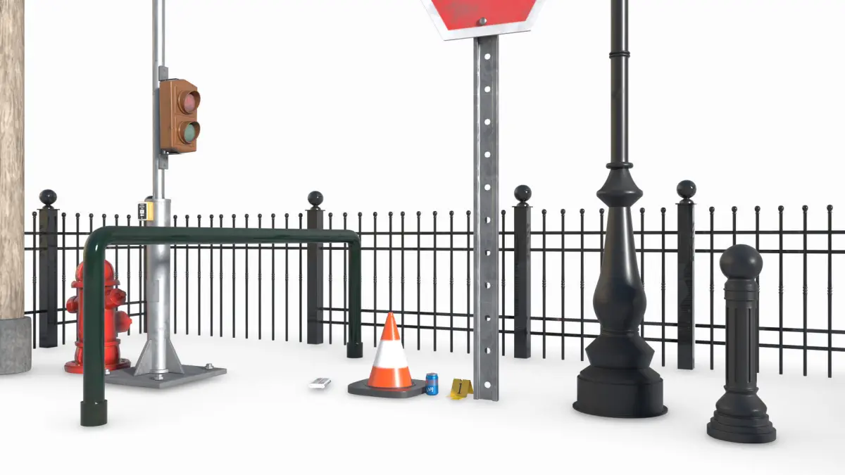 FEATURES -Both of Model is a set of 299 seperated object -High quality polygonal model, correctly scaled for an accurate representation of the original object. -Traffic Sign 1416 Polygon -Traffic Sign 1378 Vertex -Iron Barrier 440 Polygon -Iron Barrier 442 Vertex -Street Light 5144 Polygon -Street Light 5166 Vertex -Electric Pole 1280 Polygon -Electric Pole 1306 Vertex -Traffic Light 29992 Polygon -Traffic Light 30136 Vertex -Tin 4775 Polygon -Tin 4797 Vertex -Hydrant 6233 Polygon -Hydrant 6289 Vertex -Traffic Cone 256 Polygon -Traffic Cone 258 Vertex -Hedges 28524 Polygon -Hedges 28770 Vertex -Cirme Scene Card 408 Polygon -Cirme Scene Card 408 Vertex -Newspaper 686 Polygon -Newspaper 688 Vertex -Bollard 1360 Polygon -Bollard 1362 Vertex -Total 80514 Polygon -Total 81000 Vertex Prewiew rendered with Maya Redshift Redshift Standart Materials only Model has real world scale and is centered at near 0,0,0 Clean mesh edge loop,quads only Objects,Metarials, Textures use meaningful names( striped texture path names) -Model does not include any backgrounds or scenes used in preview images. ************************************************************************************************************************************* DEMENTION Traffic Sign( Height 254 CM, 100 INCH) Iron Barrier (Height 227 CM, 89.370 INCH) Street Light (Height 307 CM, 120.866 INCH) Electric Pole(Height 704 CM , 277.165 INCH) Traffic Light (Height 447 CM , 175.984 INCH) Tin (Height 11 CM, 4.330 INCH) Hydrant( Height 70 CM ,27.559 INCH) Traffic Cone(Height 40 CM, 15.748 INCH) Hedges (Height 111 CM, 43.700 INCH Width 536 CM , 211 INCH) Crime Scene Card (17 CM , 6.692 INCH) Newspaper (23 CM , 9.055 INCH) Bollard (76 CM , 29.921 ICNH) ************************************************************************************************************************************ TEXTURES DETAIL All textures are hand painted with substence painter and photoshop 4096x 4096 These (Basecolor,Roughness,Normal,Metallic,Emissive and Height Map) Models resolutions are optimized for polygon efficiency. Maya model are grouped for easy selection, and objects are logically named for ease of scene management. ************************************************************************************************************************************