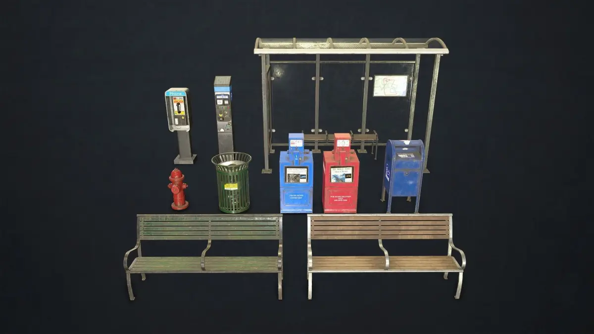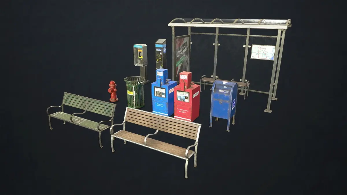 Street Elements Collection including game ready models with PBR textures: