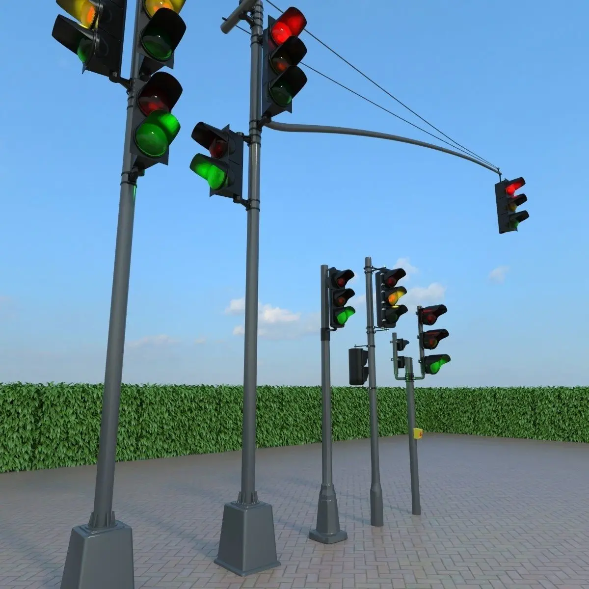 models list:1) 5 different traffic lihts2) 3 different streetlights3) 13 traffic sings4) 6 different trash bins and cans5) pedestrian barrier elements6) phone and phone station7) bus stop8) bench9) hydrant10) road closures elements11) table and chairs with canopy12) advertising stand