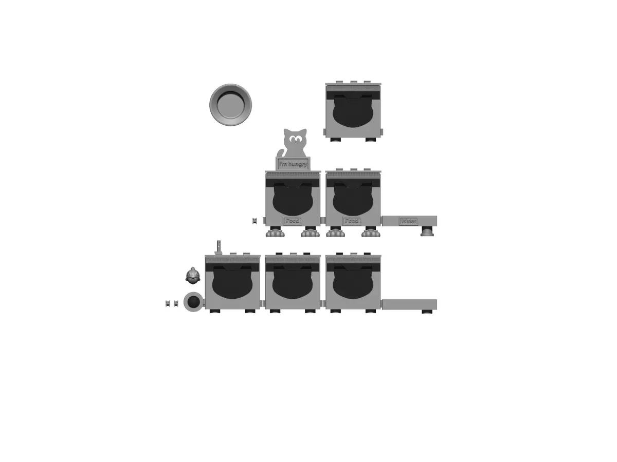Unfortunately, our world is not ideal and there are many homeless animals in it. Fortunately, there are people willing to help them.I often see cut plastic bottles in yards that are used as bowls for stray animals and that do not decorate this yard, so I decided to make a model that will satisfy not only the needs of four-legged friends, but also decorate the street.This model is prefabricated and consists of two main zones, as well as decorations and toys for cats that were not lucky enough to find their person.The closed area is designed for food so that it does not get wet during rain.The second zone is for the water bowl. During rains it will fill with water.A cute decoration in the shape of a cat will attract the attention of people who will be able to bring food to the feeder.An area in the form of a ball closed in a pipe will give a stray cat the opportunity to remember his nature and play. Also included is a model of a fish and a bracket to which you can attach a metal rod and rope to add another piece of entertainment for your furry guests. ATTENTION - the rod and rope for the fish are shown in the main image for informational purposes only. The rod model is not included.Also, thanks to the prefabricated structure and connecting brackets, you can make various variations of this feeder (some examples are indicated in the main image).Have fun and give stray cats hope.