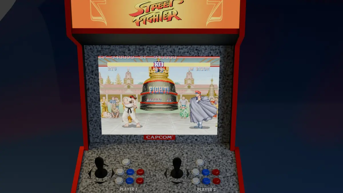 A 3D model of an arcade game inspired by Street Fighter, featuring vibrant HD textures and a stylized, low-poly design. The characters are reimagined with geometric simplicity, capturing the iconic personalities and moves of the original fighters while maintaining a modern, clean aesthetic. The environments are filled with bold, angular shapes and colorful backdrops, evoking the essence of classic arcade stages but with a minimalist approach. The user interface is sleek, with easy-to-read health bars and energy meters, all set against a high-definition, low-polygon framework that blends retro charm with contemporary flair. The gameplay offers a smooth, fast-paced fighter experience, ideal for nostalgia-filled fun with a fresh, modern look. 15,881 Verts, 15,097 Faces (or less if ground is removed)