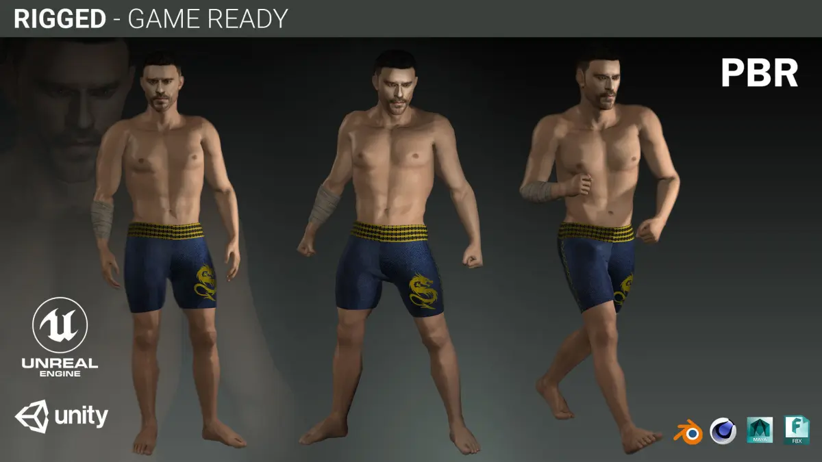 Model Name: Street FighterFile Formats: C4D , Maya , Blender , Unity , UnrealUnits : CmTextures : All Textures Available in Each Zipped Format Polygons : 425021 Vertices : 415303