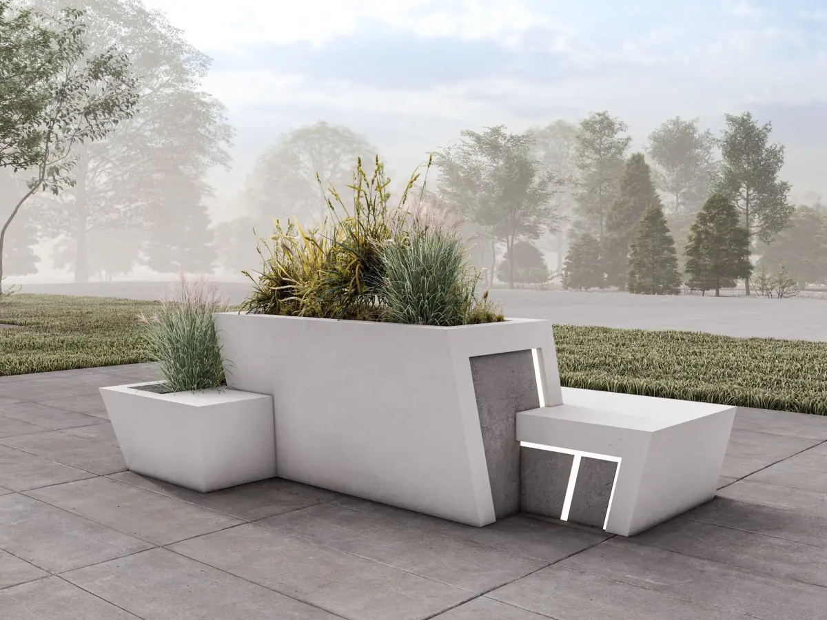 This is low-poly model of street flowerpot. It is made of concrete and is used as a bench in the park.