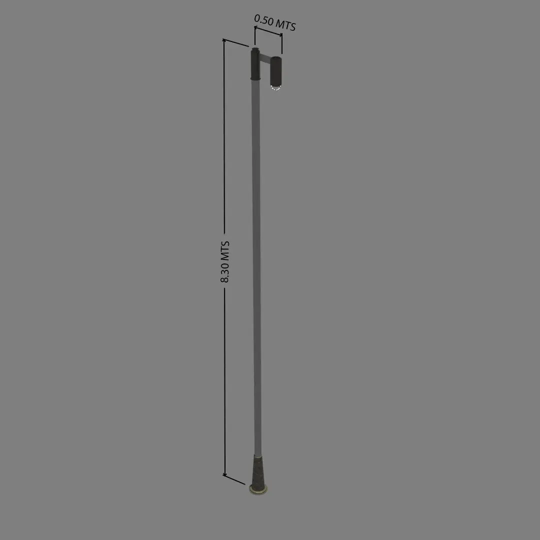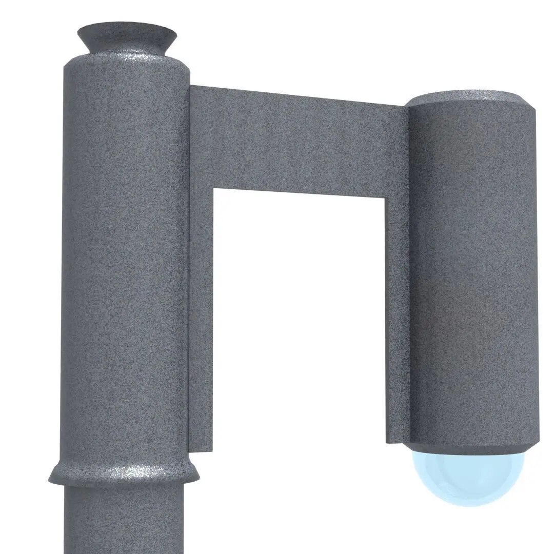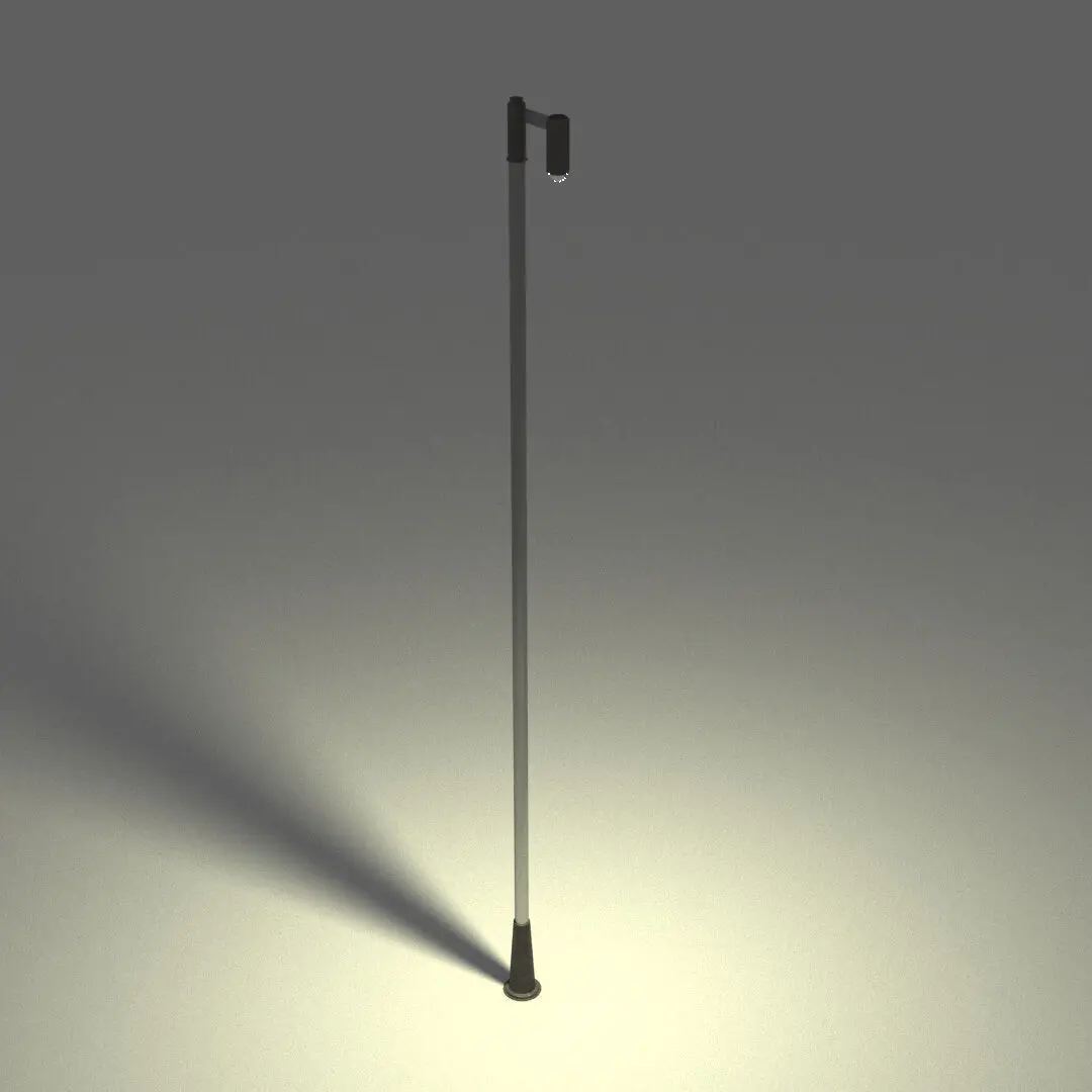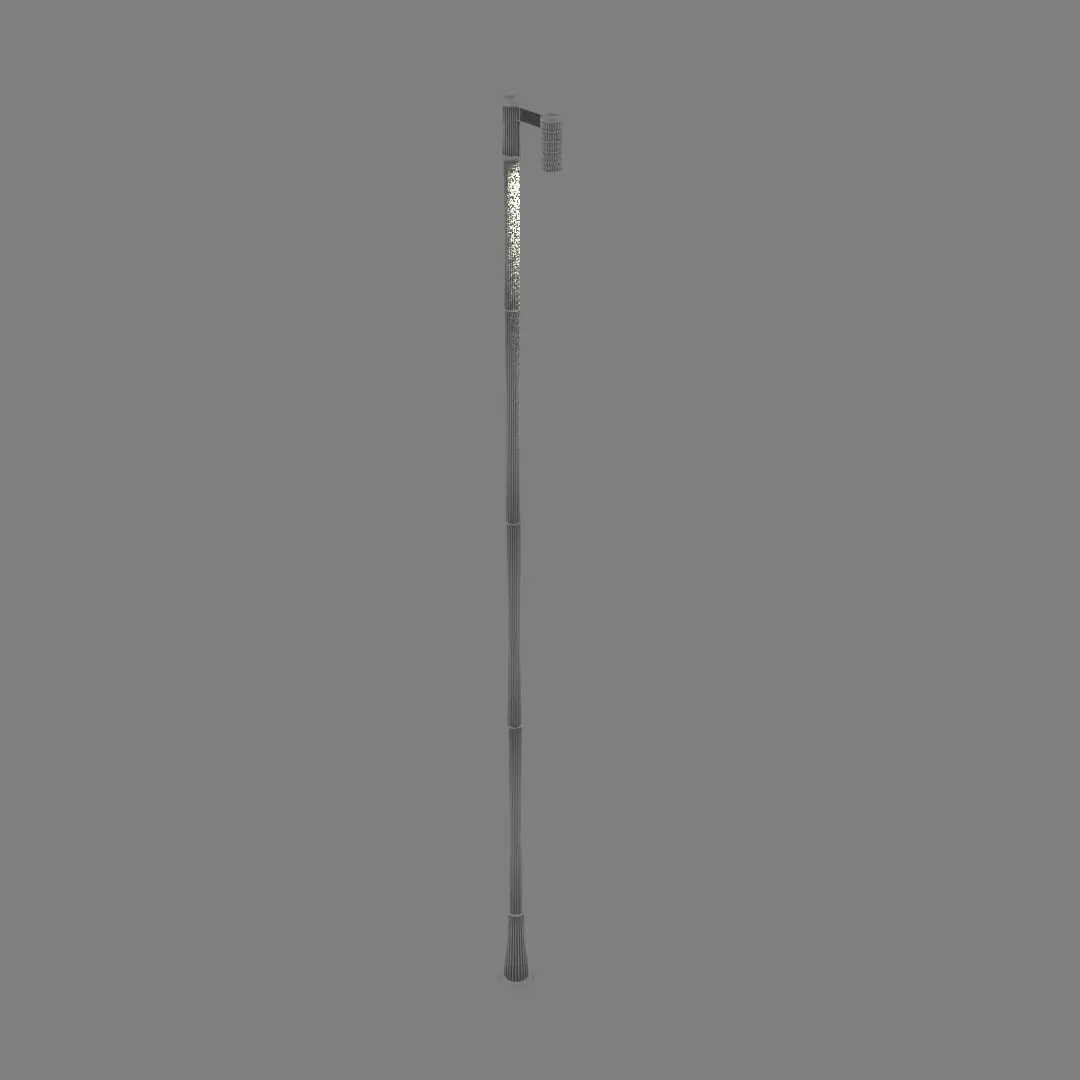 A street lamp for illuminating architectural spaces with a touch of genuine style, ideal for illuminating open areas, terraces, large patios, and even hallways. It's perfect for creating the perfect composition for your project. With 8K textures in dark aluminum, neutral glass, and plastic.