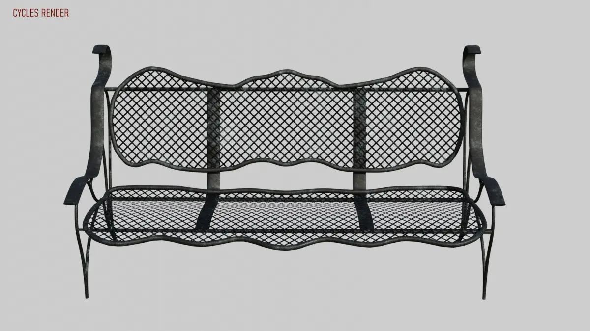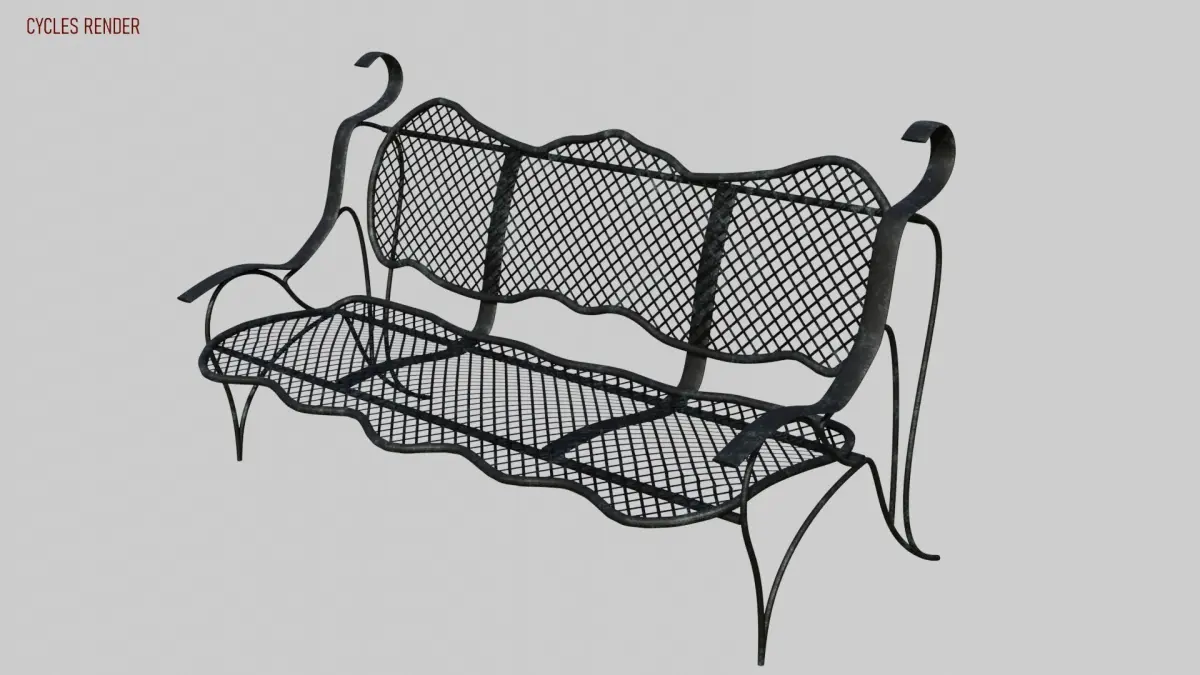 9 independent elements of urban furniture in modernist style to put in to your city project with different wrought iron materials in procedural version and baked textures.