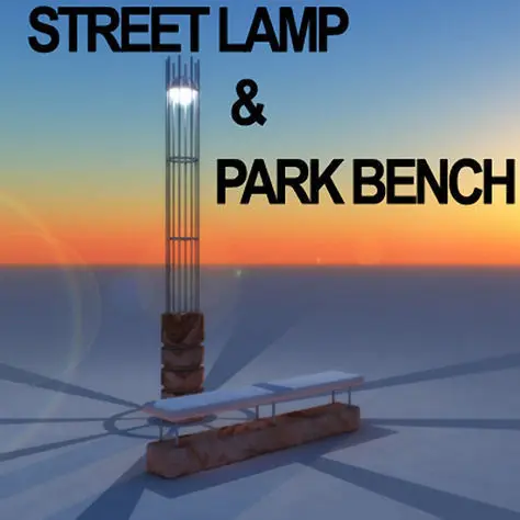 Steele-Stone Street-Lamp is an appealing modern design street-lamp for urban furniture.A block of marble supports some pipes of steel and the lamp.The park bench suggets the same scheme of construction.They can be used together: are ideal for park and garden and street sceneries.