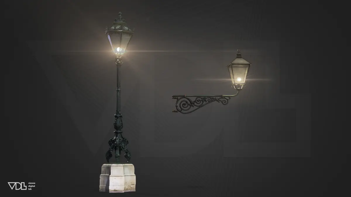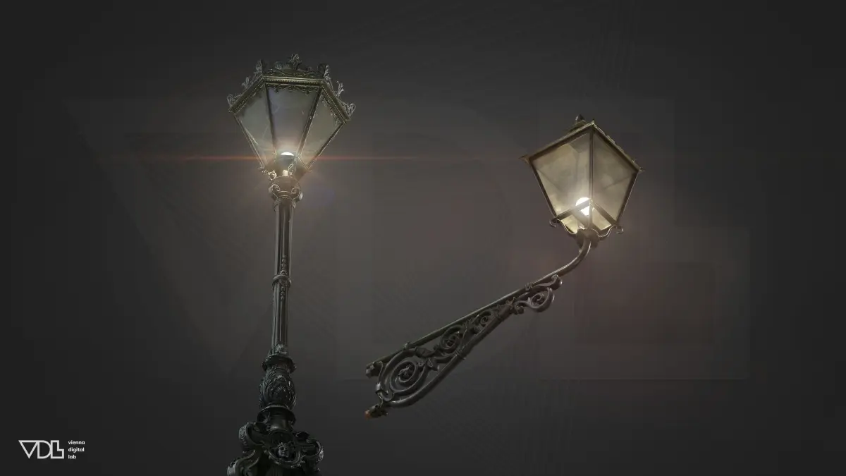 These street lights are original, hyper-realistic 3D scans from the Austrian Imperial Palace in Vienna, Austrias most prestigious cultural heritage sites and a central axis of influence on European history during the Habsburger Monarchy stretching from the late Middle Ages until the early 20th century. They are a testament to the Baroque era's artistic vision and the Habsburgs' desire to create a residence that exudes power, beauty, and sophistication. The ornamental design of the street lights includes motifs that are symbolic of power, nature, and mythology. Common elements include acanthus leaves, scrolls, and other natural forms that reflect the Baroque fascination with nature and the divine.