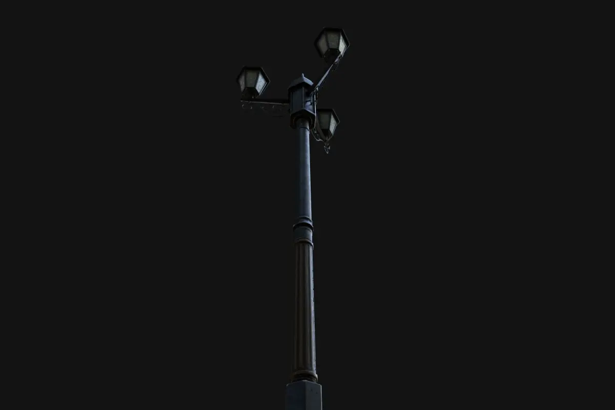 About the Model: 1.)Model is centered. 2.)Model has 4 objects(Pole and 3 lamp Handles) 3.)Model has non overlapping UVs.4.)Model has 5946 polygons and 5914 vertices. 5.)Model is not Scaled according to real world units.