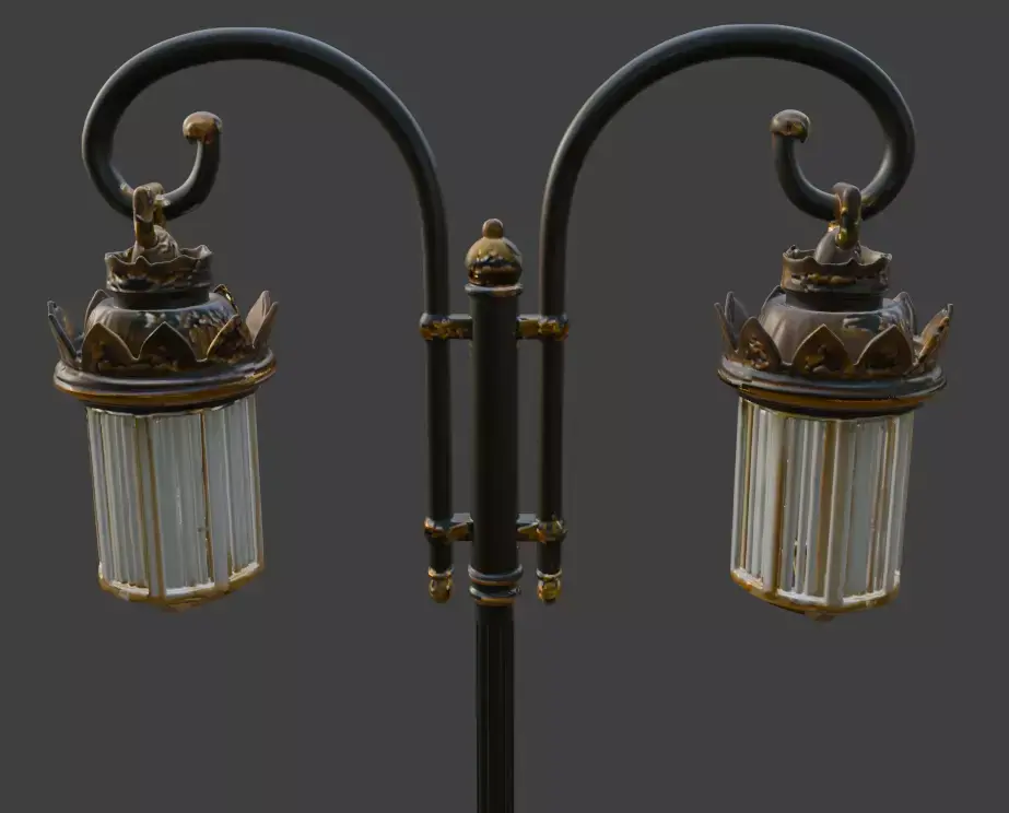 High-quality vintage outdoor lamp post (street light) 3D model perfect for gardens, parks, old town streets, Victorian scenes, and luxury house exteriors. Detailed metal work, glass panels, and classic design. Ready for games, archviz, animations, and rendering. Clean topology, UV unwrapped, PBR materials included. Works perfectly in Blender, Unreal Engine, Unity, Maya, 3ds Max, and Cinema 4D.