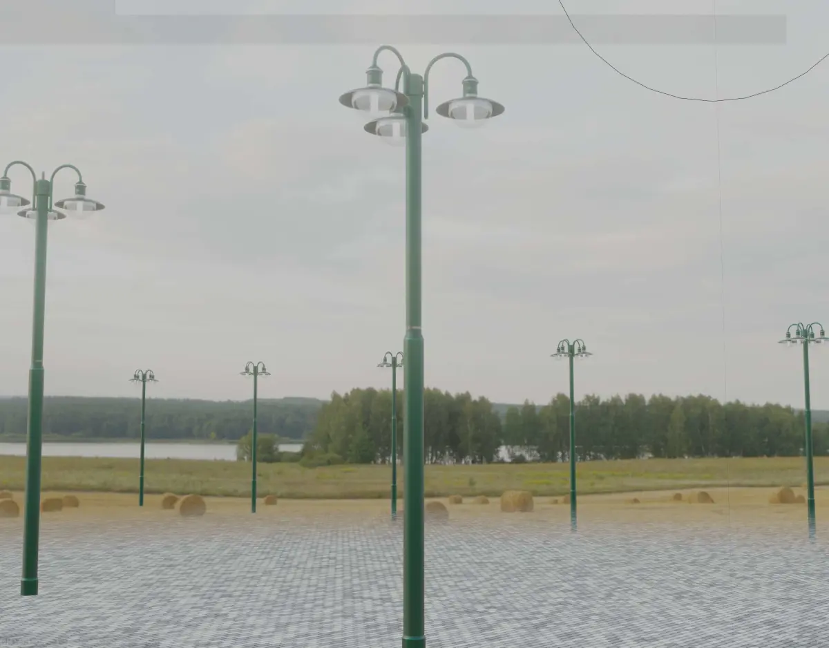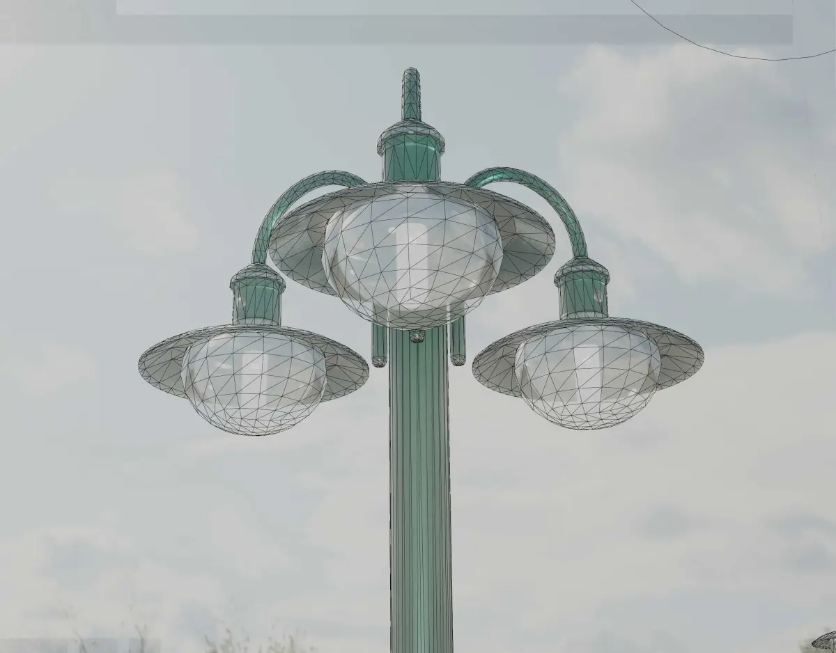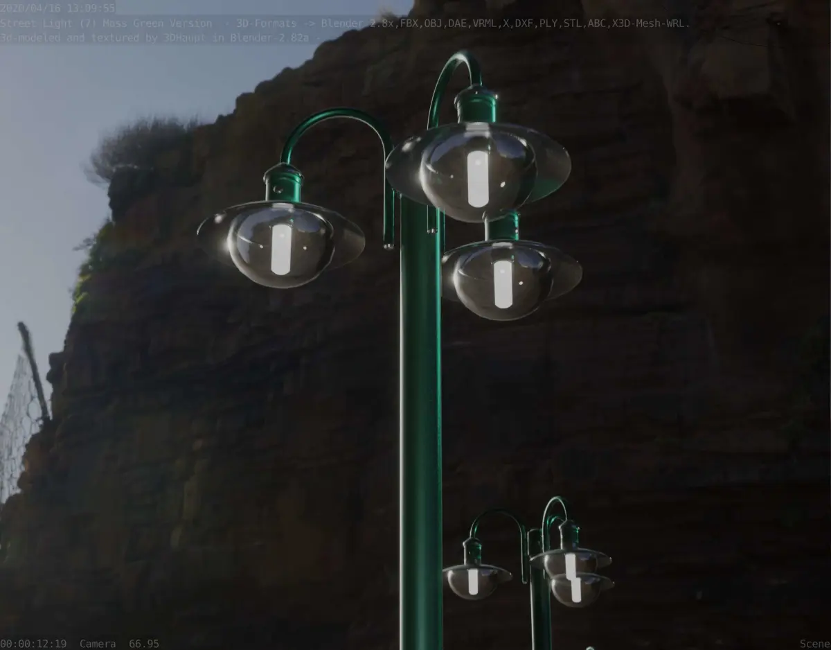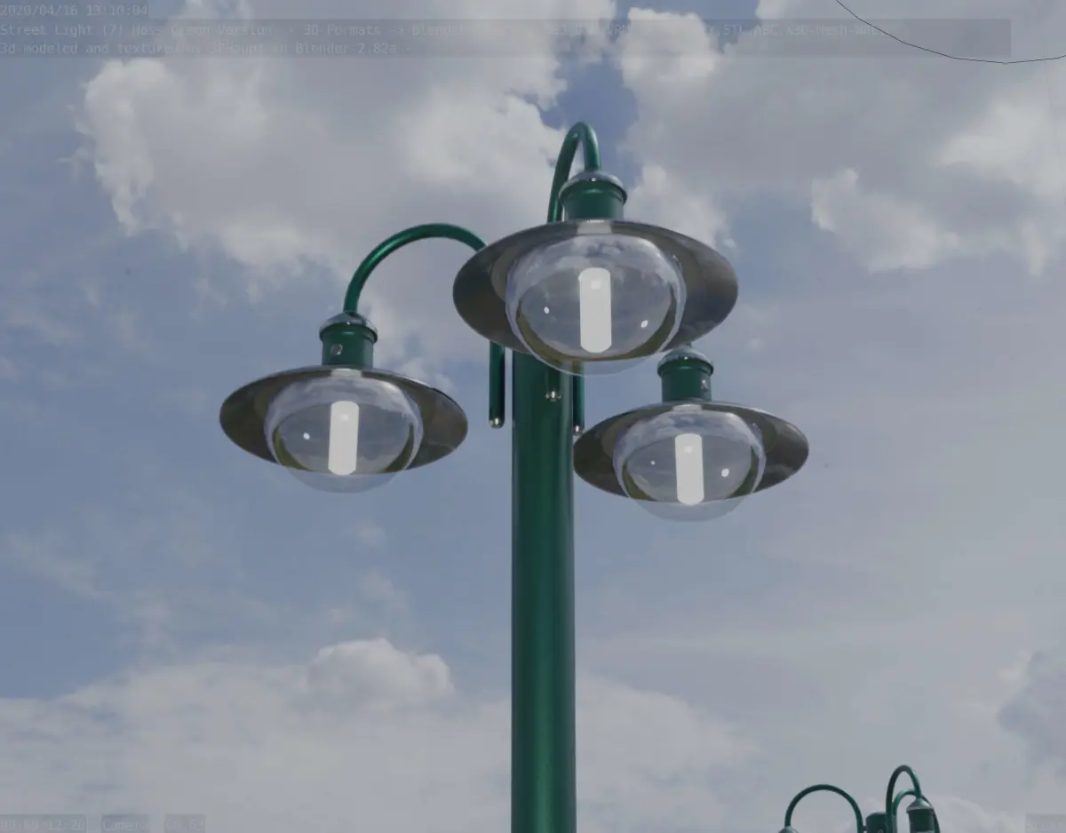 Street light 7 the moss green textured version with three lamps.