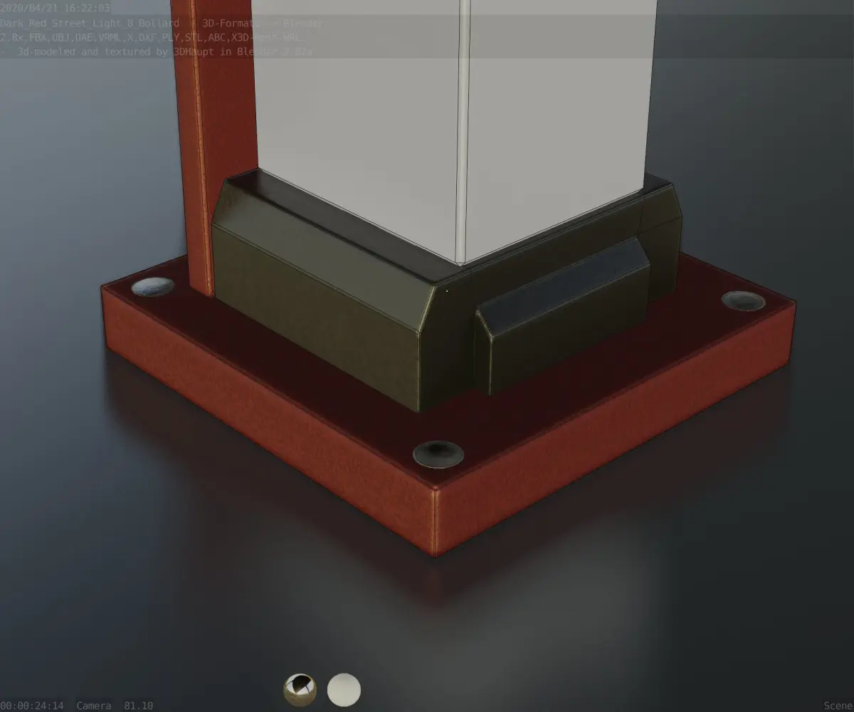 - Modeled and textured with Blender 2.82a (https://www.blender.org/)