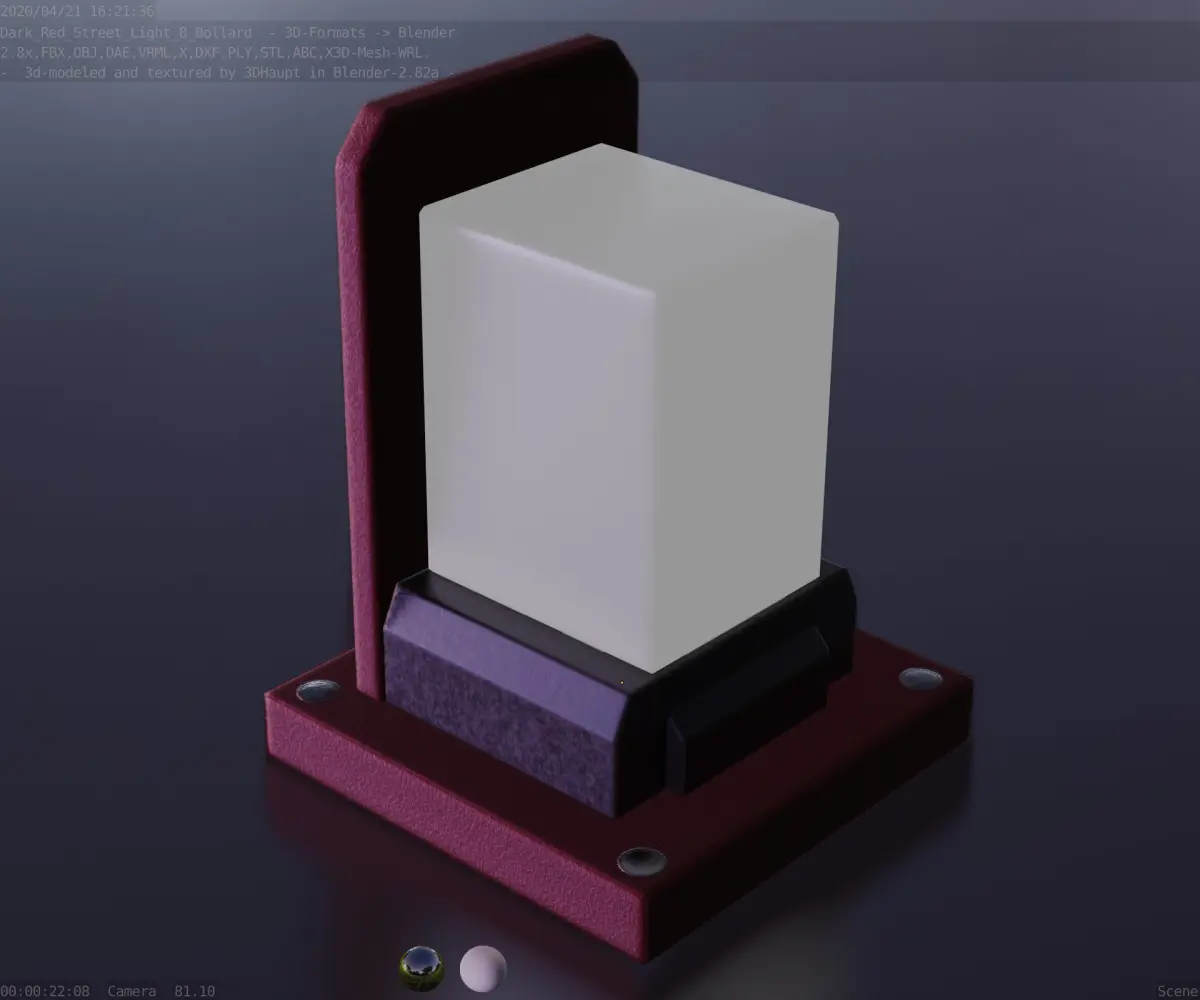 Here is street light number 8, a 200 mm high bollard with integrated light (the dark red textured version).