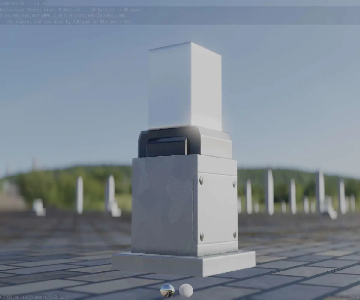 Here is street lamp number 8, a 350 mm high bollard with integrated light (the galvanized textured version 3).