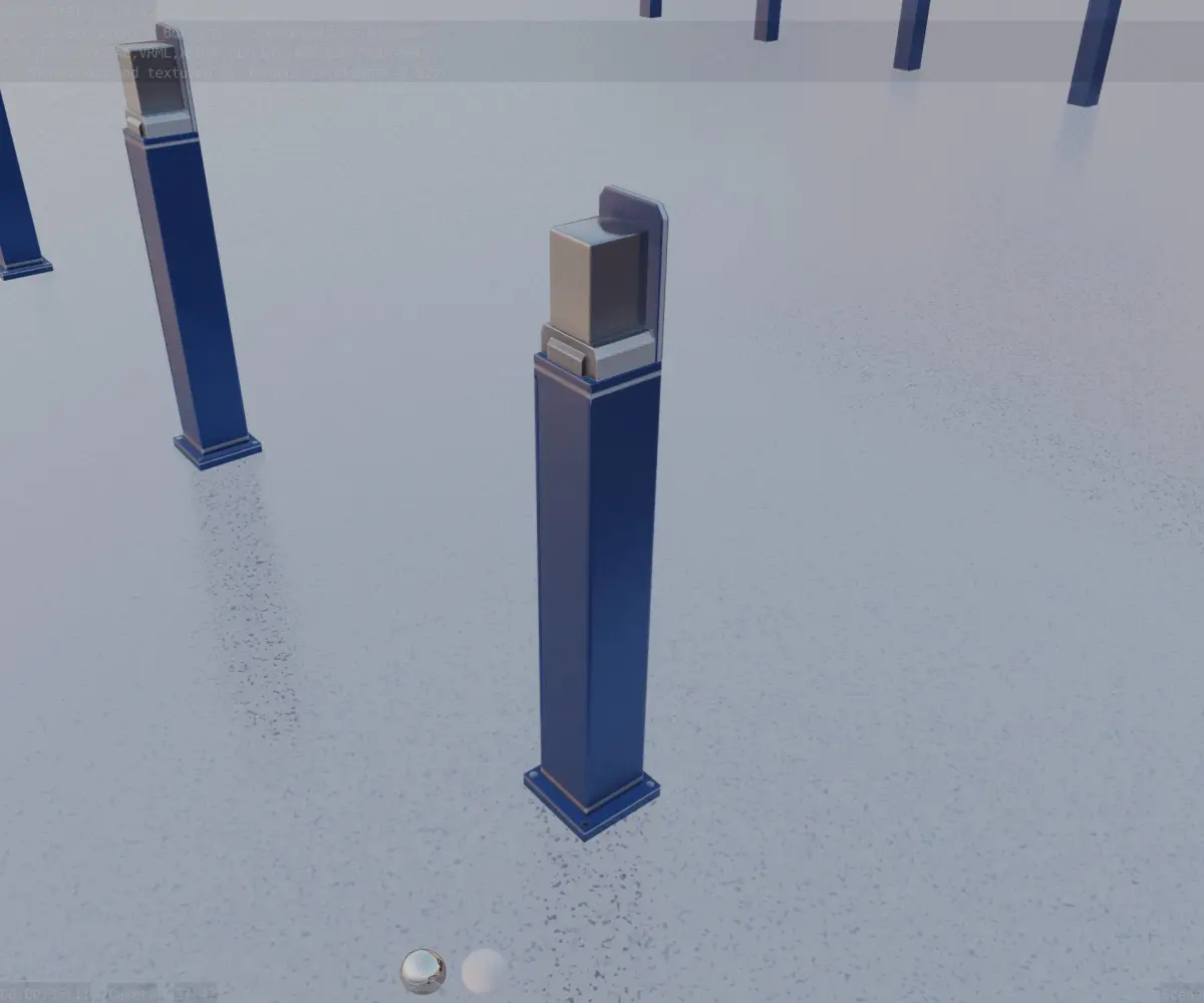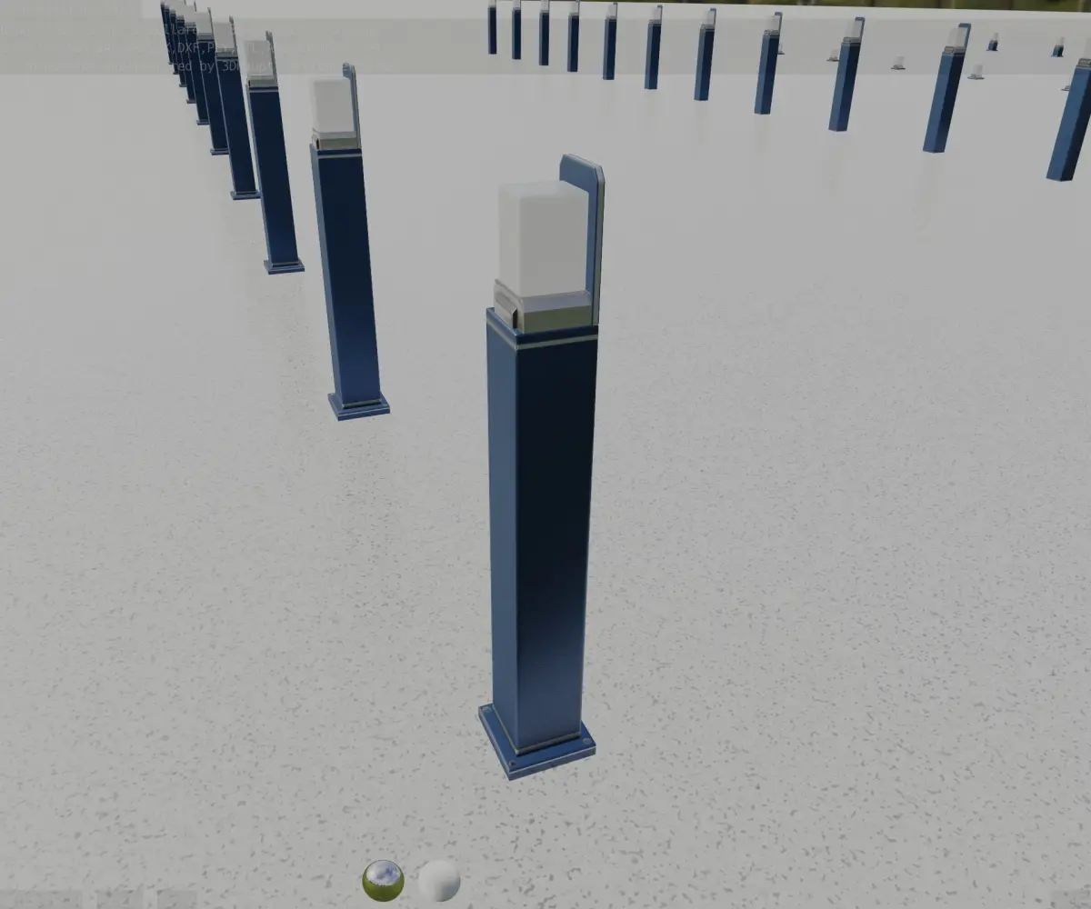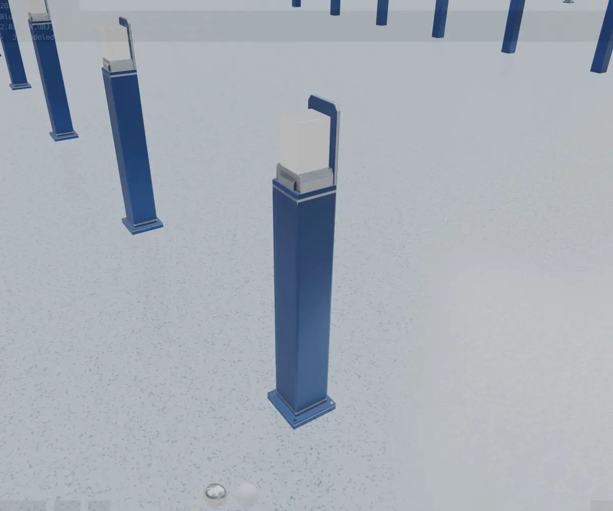 Here is street light number 8, a 900 mm high bollard with integrated light (the futuristic blue textured version 2).