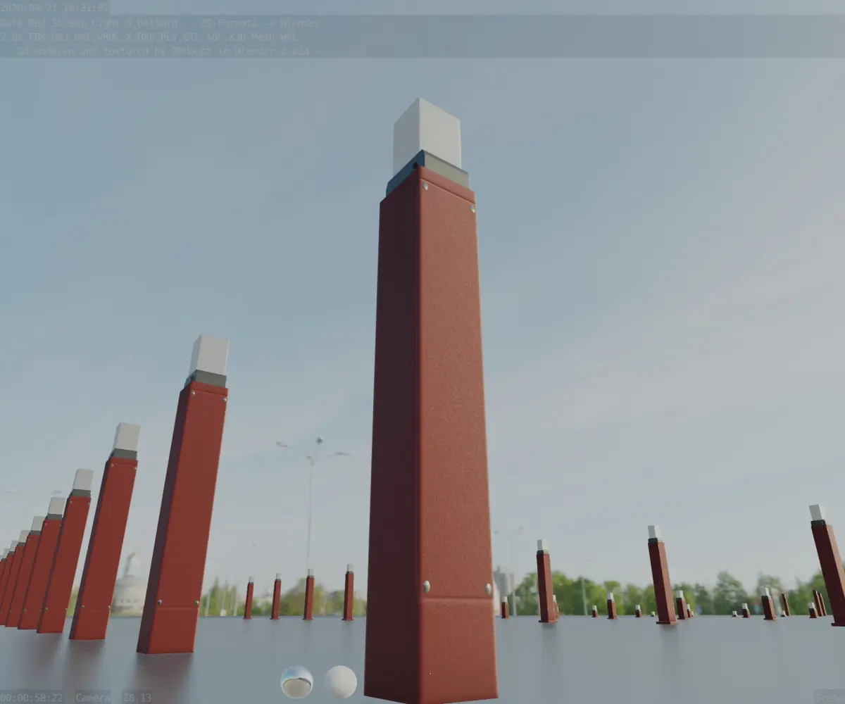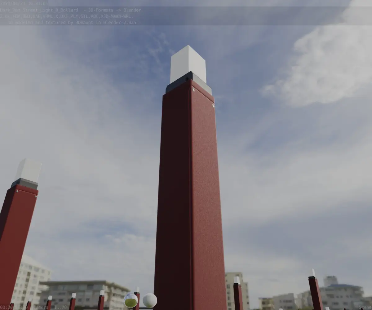 Here is street lamp number 8, a 900 mm high bollard with integrated light (the dark red textured version 6).