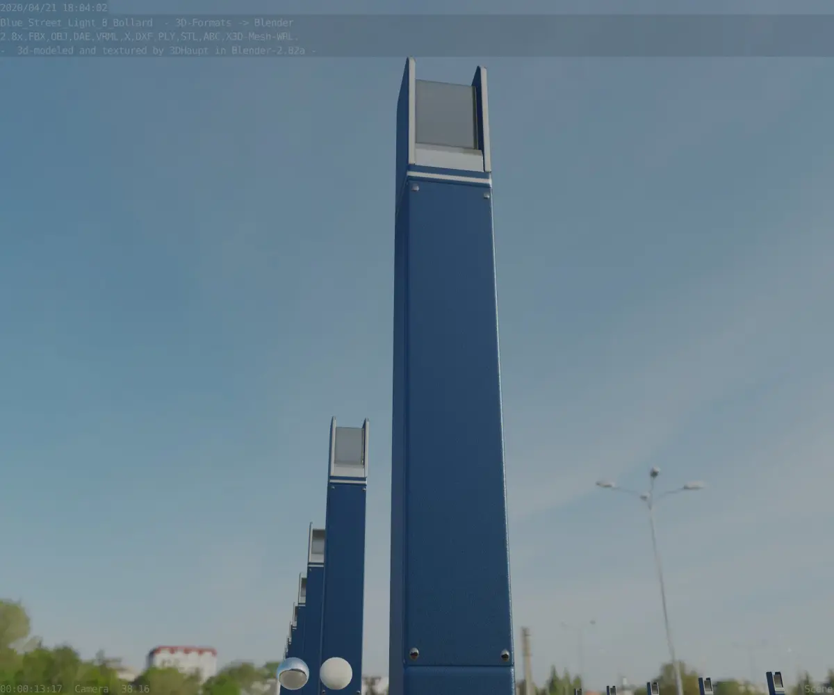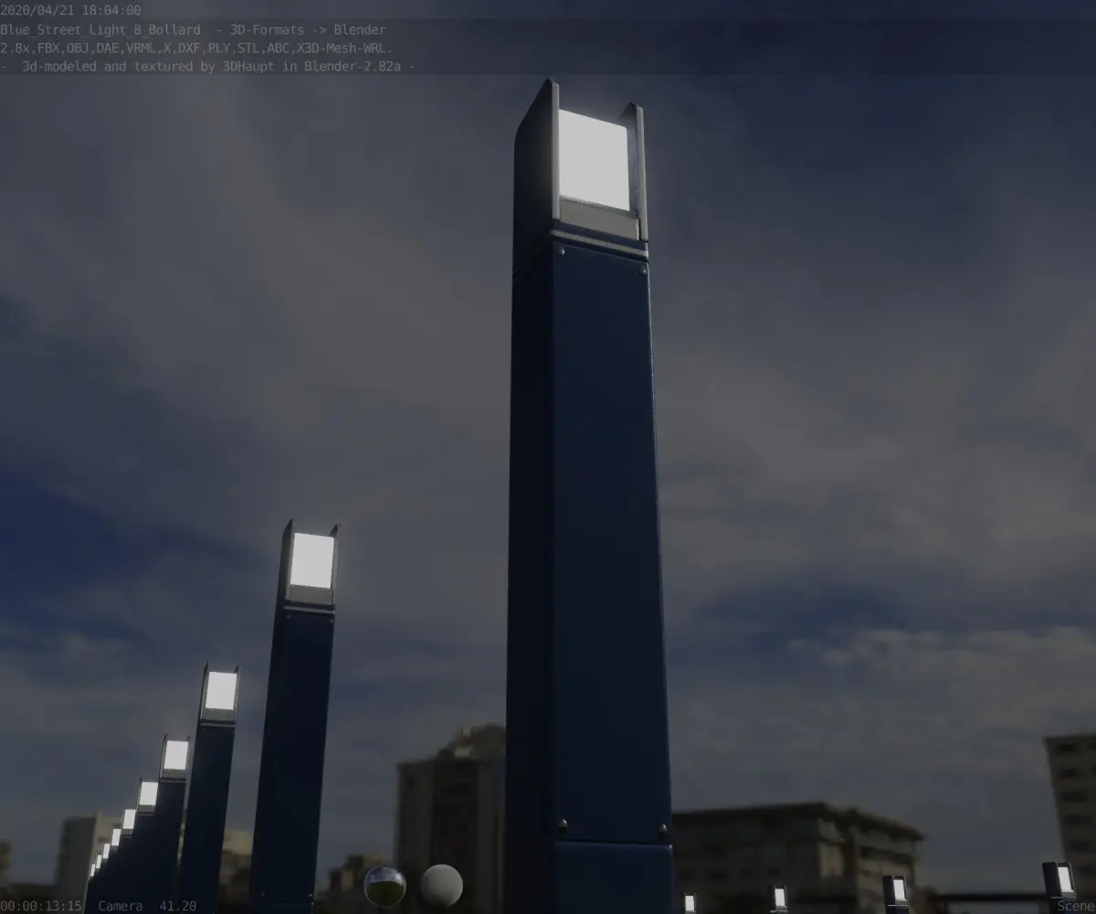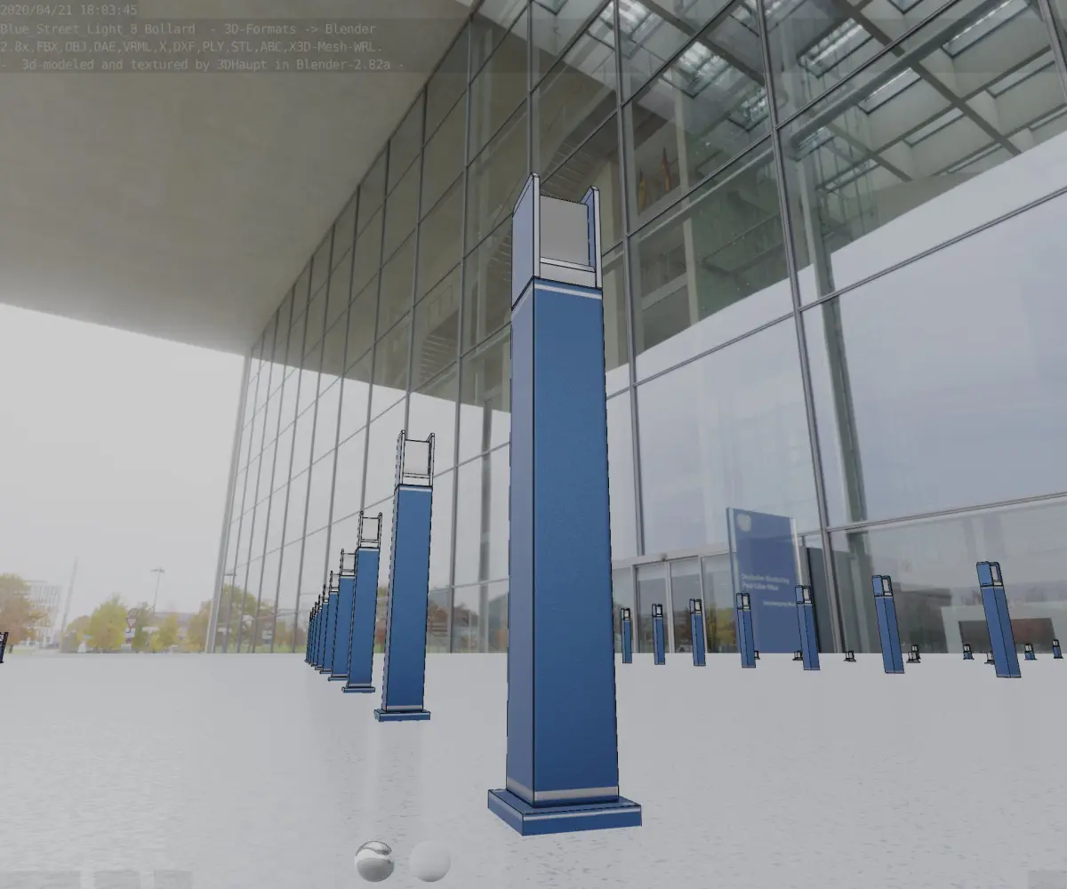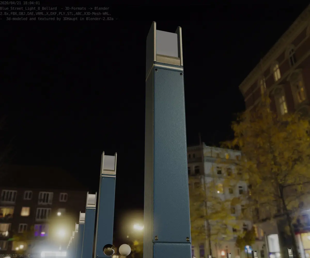 Here is street lamp number 8, a 900 mm high bollard with integrated light (the futuristic blue textured version).