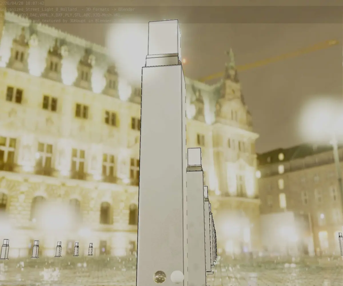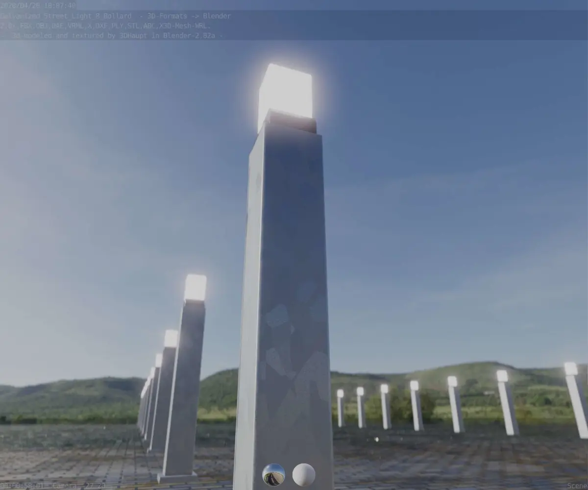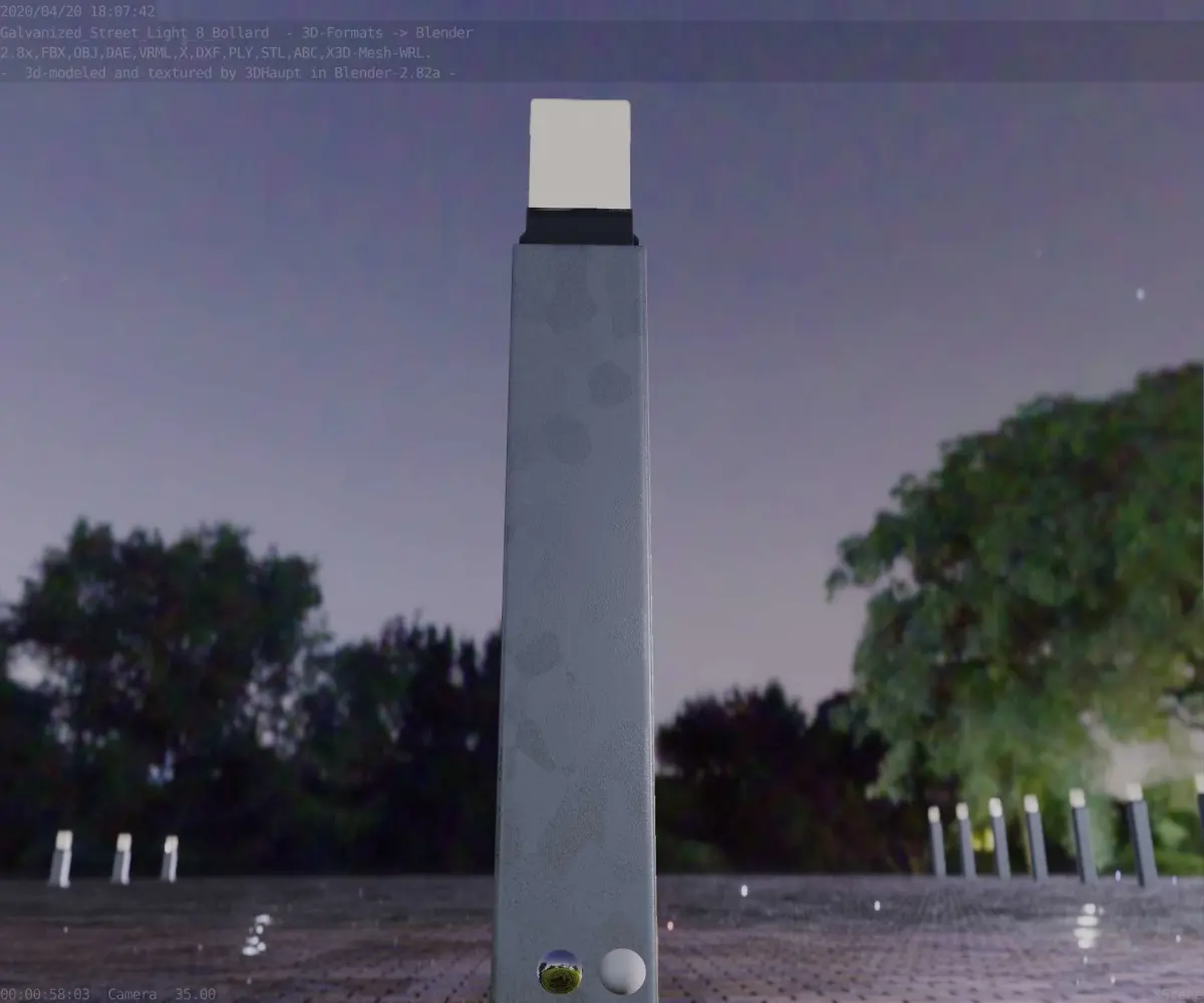 Here is street lamp number 8, a 900 mm high bollard with integrated light (the galvanized textured version 3).
