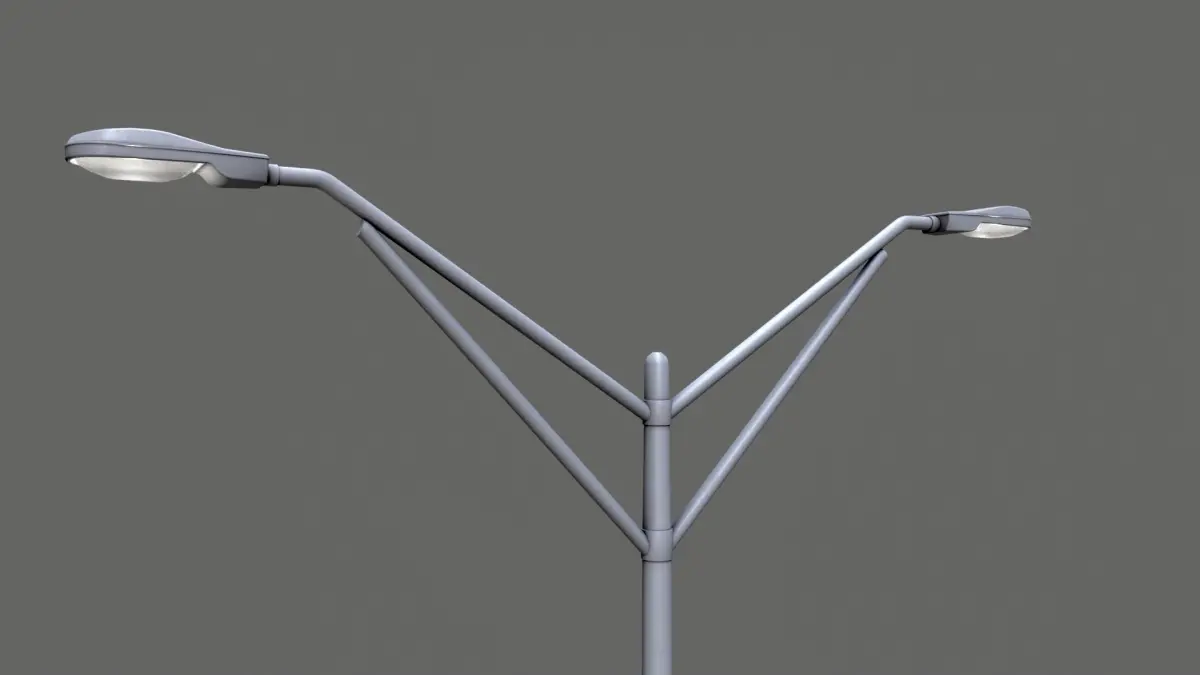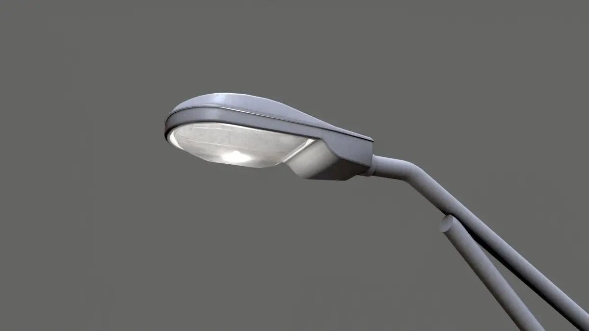The street lamp model was created based on a photo reference, with realistic dimensions. The light effect was added only in the render; there is no emissive map.