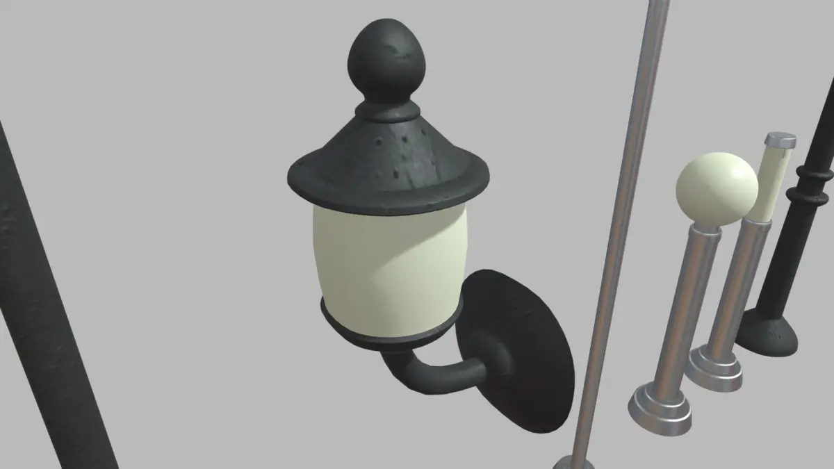 The 6 street lights will have textures, fbx, obj, mb, dae, blend and substance file, all in one unique UV.