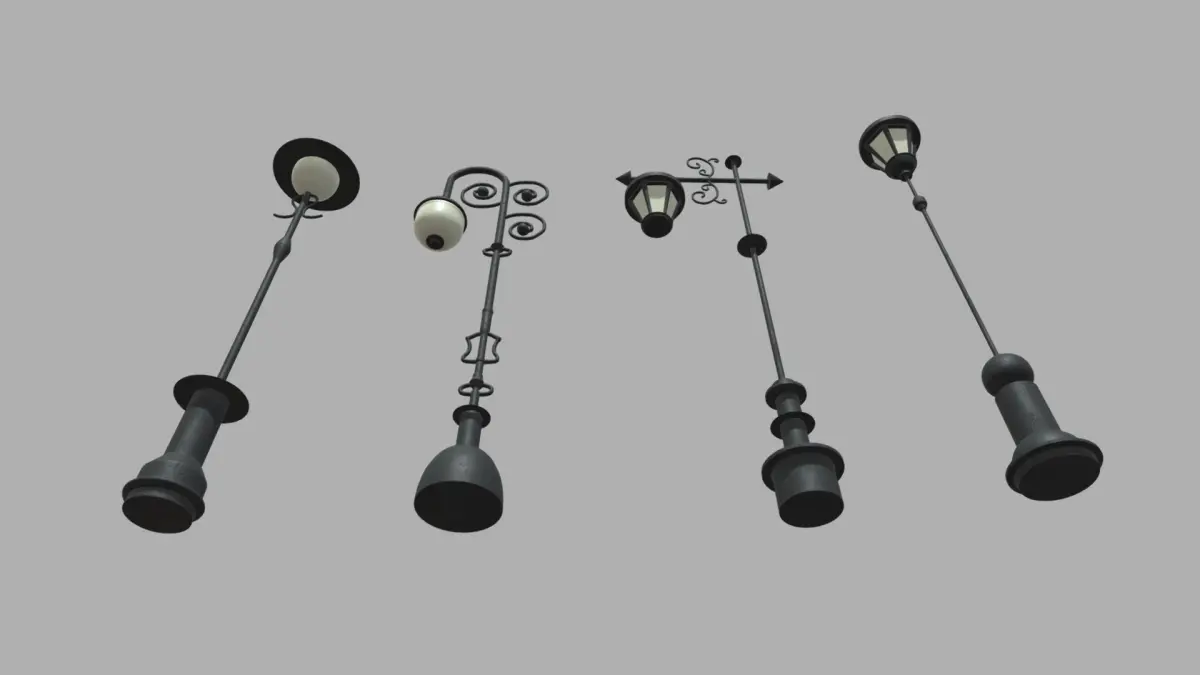 The 4 street lights will have textures, fbx, obj, mb, dae, blend and substance file, all in one unique UV.