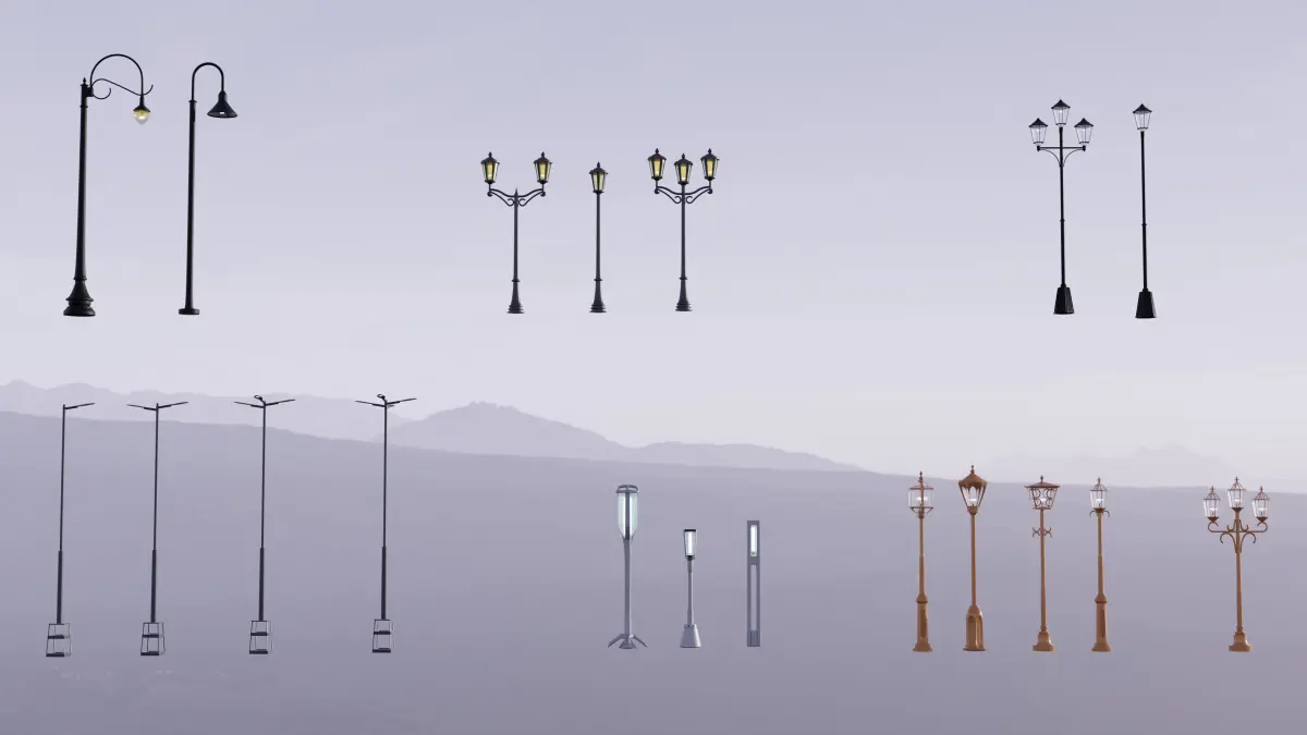 I have made a bundle of lights that you'll maybe need-European lights-Harbor lights-sci-fi lights-Fairytail lightsThe zip folder contains the blend and the textures and it works better than the FBX files