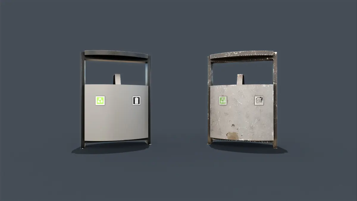 Low Poly pack including game ready models of Urban litter bins with PBR textures: