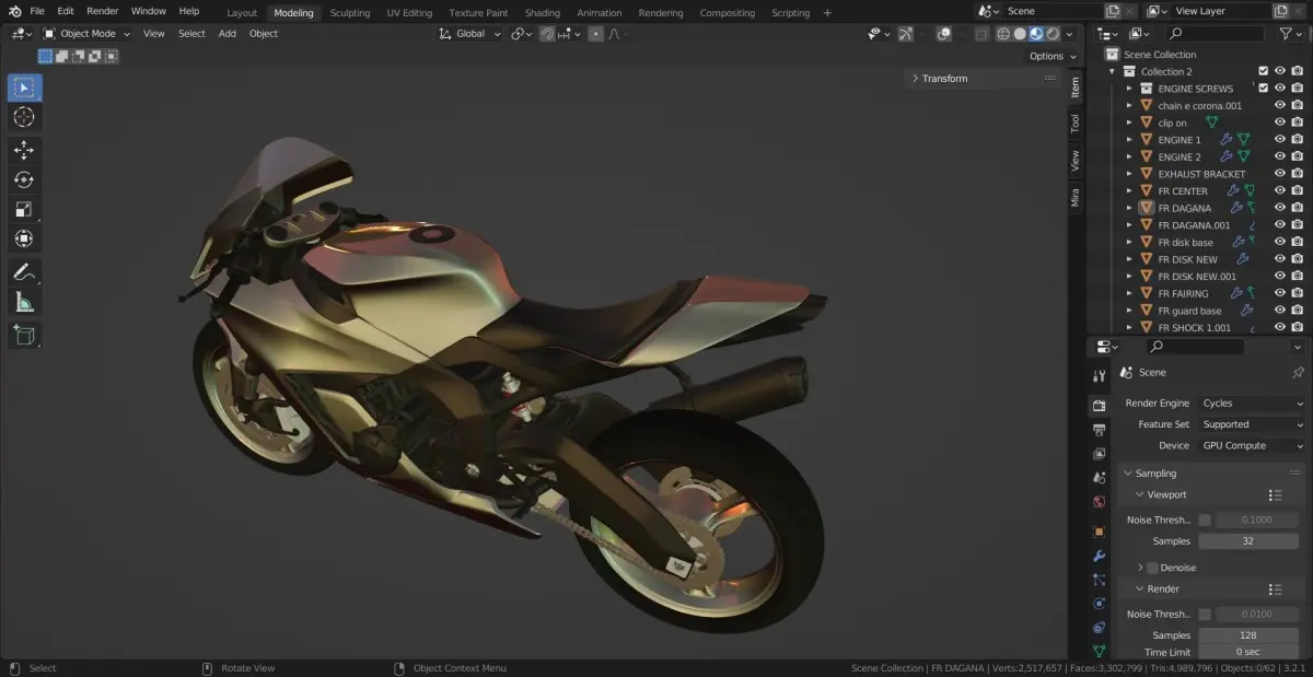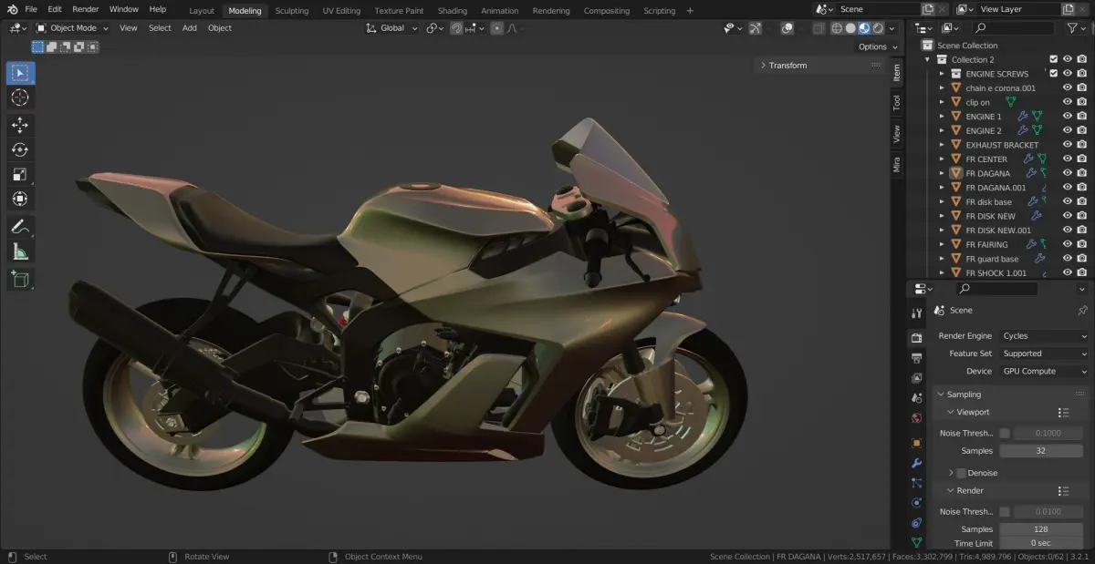 combustion engine based street motorcyle created in blender. structured file. basic materials . stl available (non applied modifiers in export)
