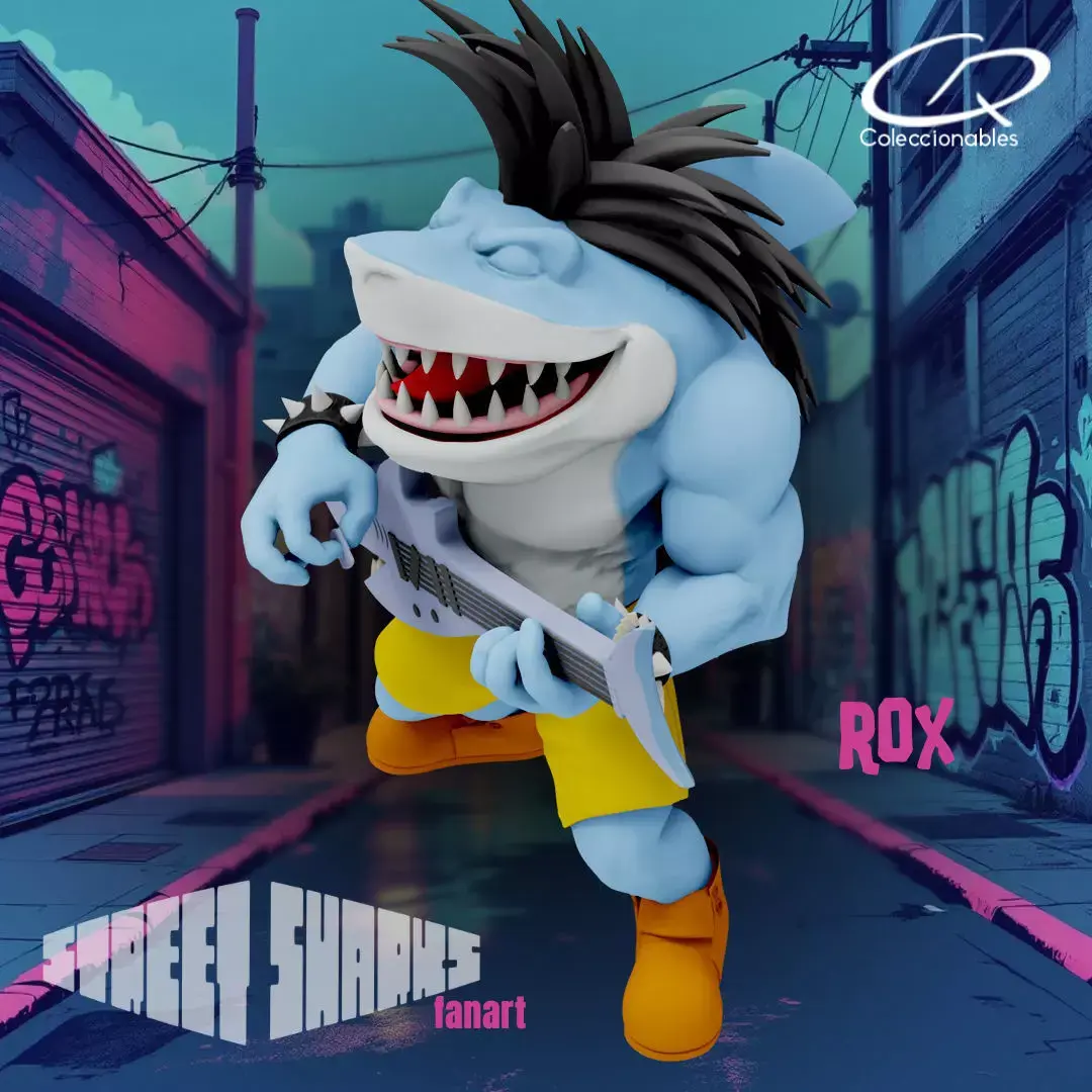 Rox (Melvin Kresnik), voiced by Lee Tockar, is an up-and-coming musician who’s accidentally mutated and winds up an ally of the Sharks. In his debut, Dr. Paradigm’s scheme targets Rox’s audience; after foiling it, Rox continues his career by passing off his look as a stage “costume,” which smartly fits his rock persona. On screen he’s described as a bull shark, though the toy line labeled him a mako shark—a fun quirk that fuels fan debates. He fades from the main cast after season two. His key episode is “Shark ’n’ Roll” (1994), which ties his music background to Paradigm’s sci-fi chaos; some fandom guides add color about the mutation setup and mind-control hijinks, very much in the series’ tongue-in-cheek vein. Traits & abilities. As a mutant, Rox blends aquatic power with showman charisma—a literal frontman whose look (vest, tee, street-rock vibe) reinforces the “urban hero” tone of Fission City.