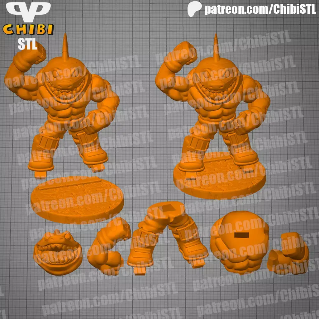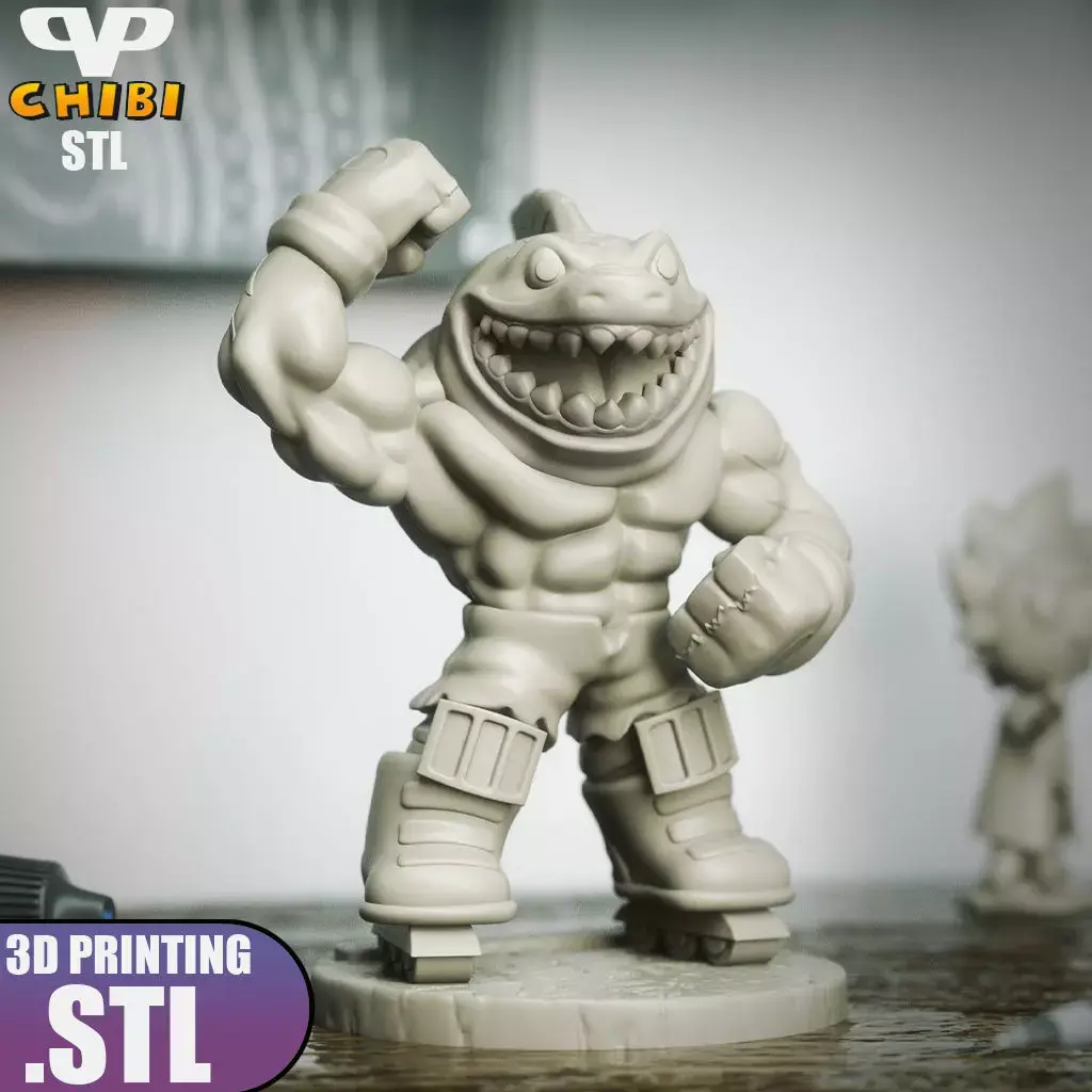 Street Sharks Streex Chibi for 3D Printing comes splitted and keyed and full model with base.