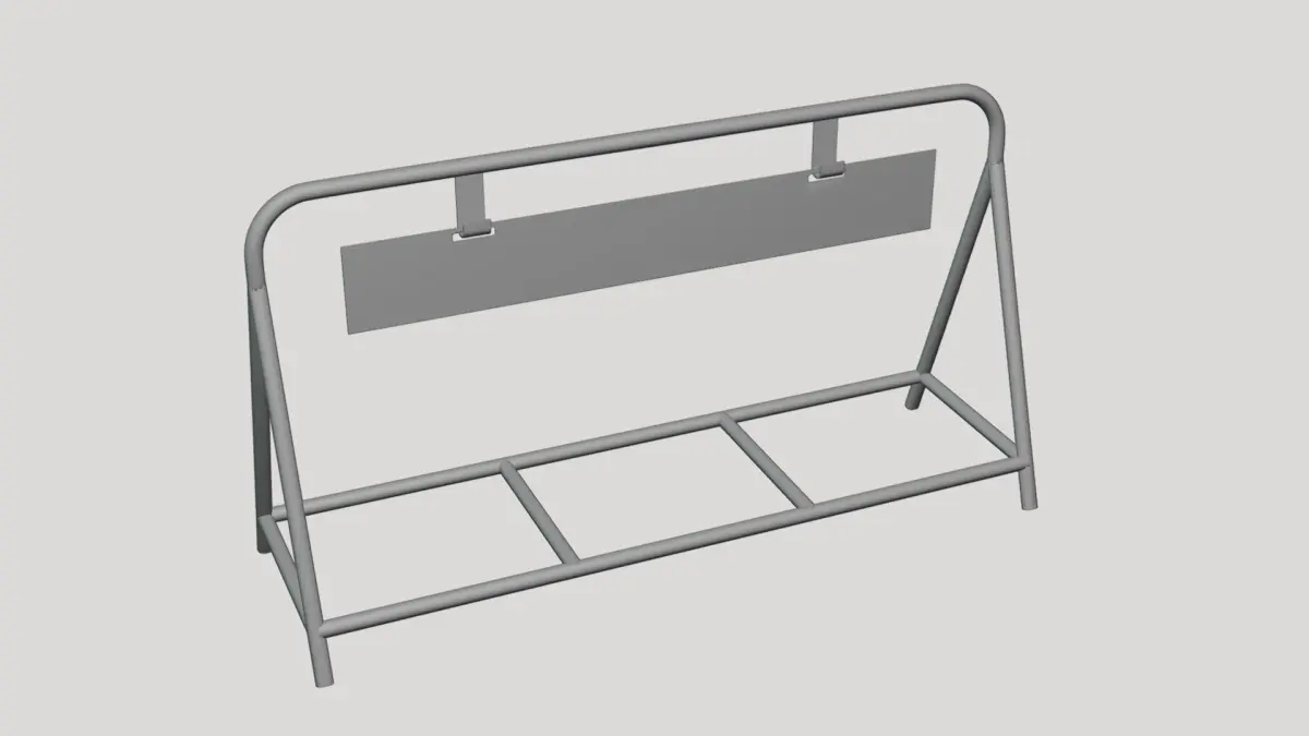 This 3D mockup features a classic street sign plank, complete with a mounting hook, metal plate, and structural frame. The simple, clean build is perfect for visualizing urban signage, outdoor wayfinding, or branded mockups.