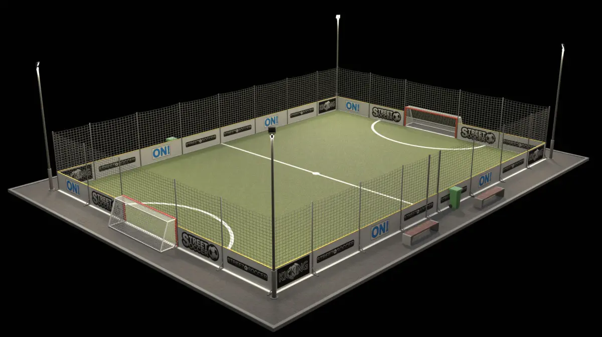 Street Soccer Field – Game-Ready AssetThis street soccer field is modeled to scale and features hand-painted PBR textures with a single 4K UV map. Designed for flexibility and performance, this asset is fully optimized for real-time applications and is game-ready.
