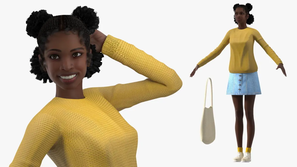 Street Style Black Teenage Girl Rigged is a high quality, photo real 3d model that will enhance detail and realism to any of your rendering projects. The model has a fully textured, detailed design that allows for close-up renders, and was originally modeled in 3ds Max 2014 and rendered with V-Ray. Renders have no postprocessing!Hope you like it!