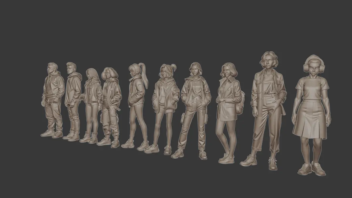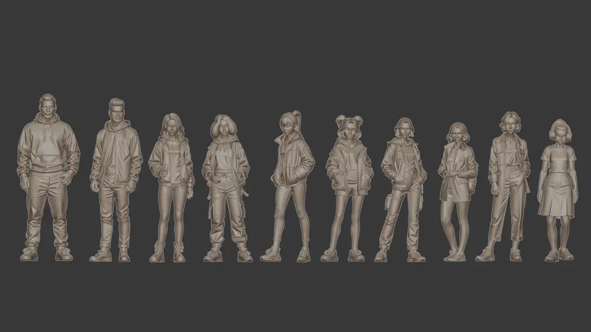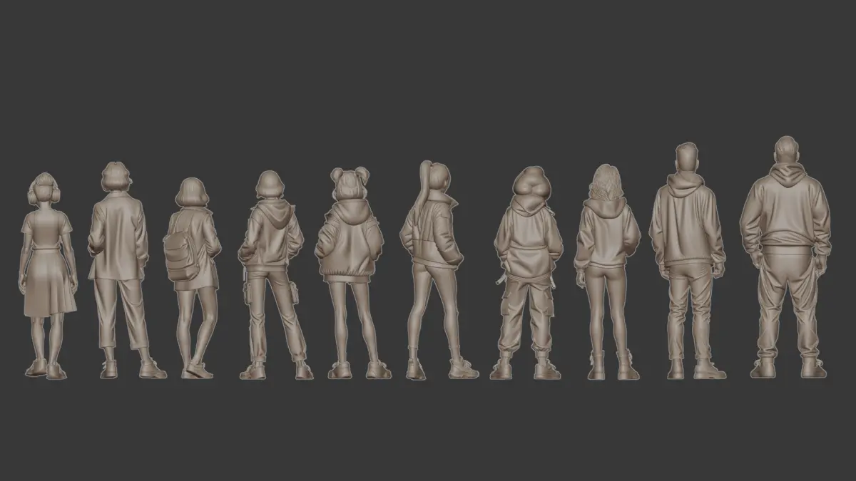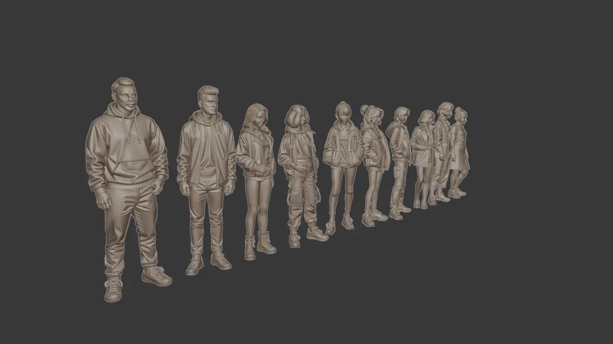 Street style figure set for diorama 3D print model