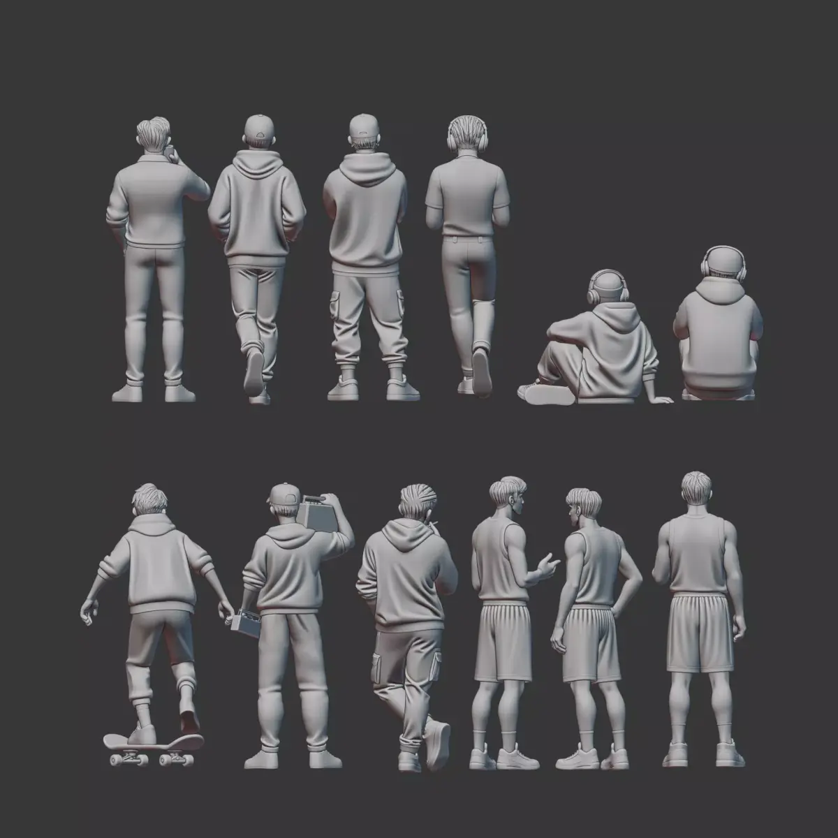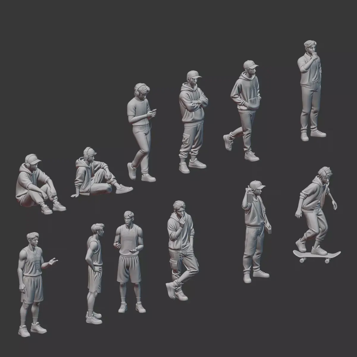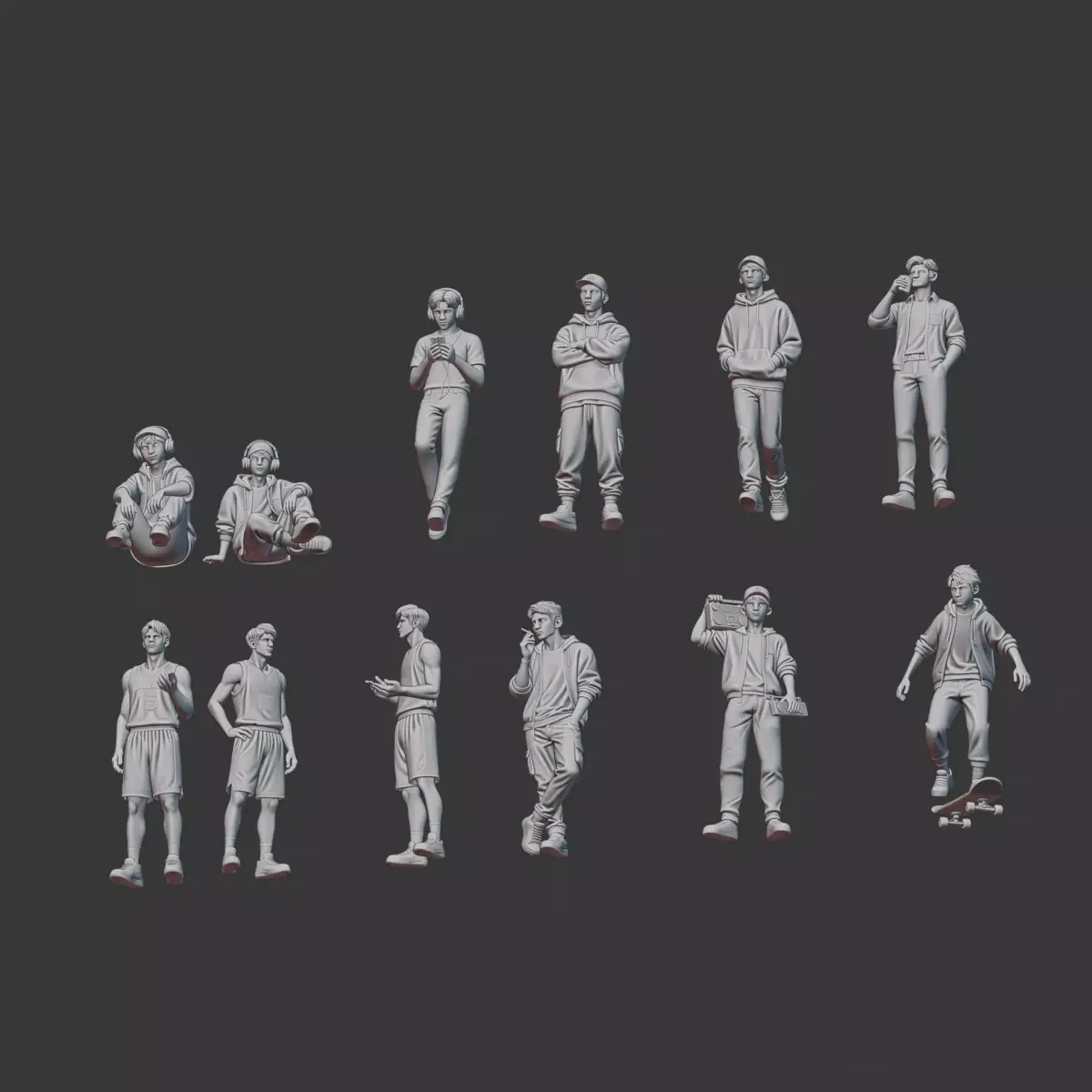 HomeCatalogStreet style man boy figure set for diorama 3D print model