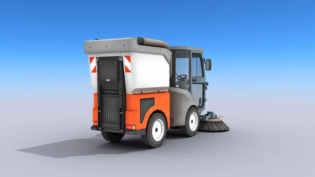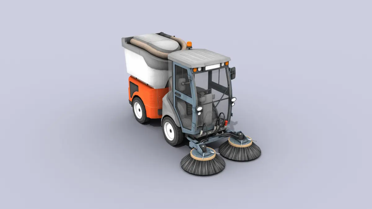 High-quality low-poly 3D model of Street Sweeper vehicle.