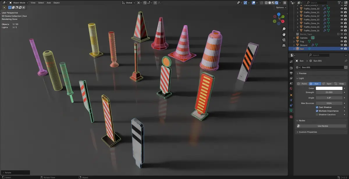 Dirty traffic cone set. Lowpoly/Ready for game, high quality model.
