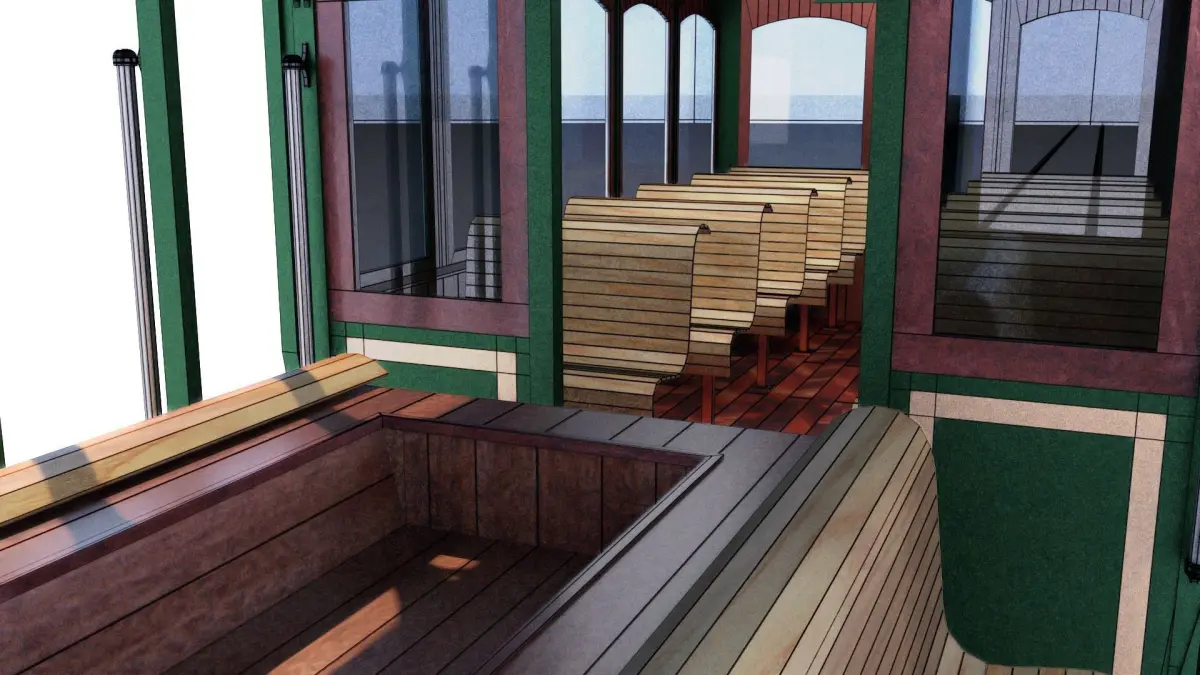 A street trolley is a vehicle on rails used primarily for transporting passengers and typically operating on city streets.