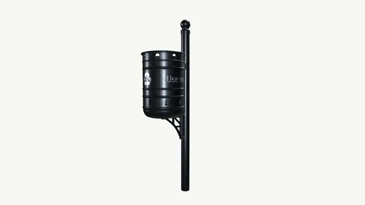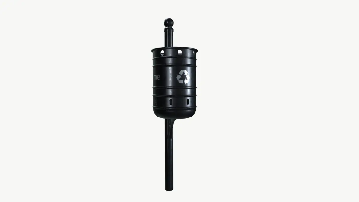 - The bold black finish not only adds a modern touch to public spaces but also makes it easy to spot, encouraging responsible waste disposal. Featuring a clear and informative sign, this bin effectively communicates its purpose, guiding pedestrians to dispose of their trash properly and helping to maintain a tidy community.