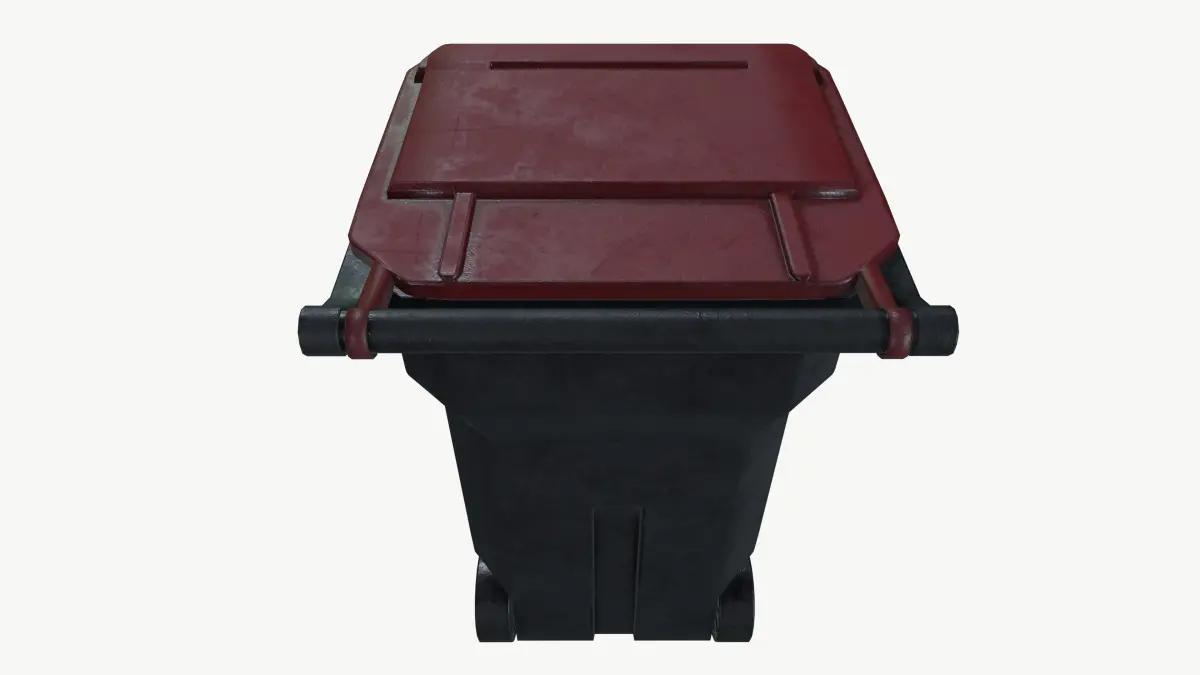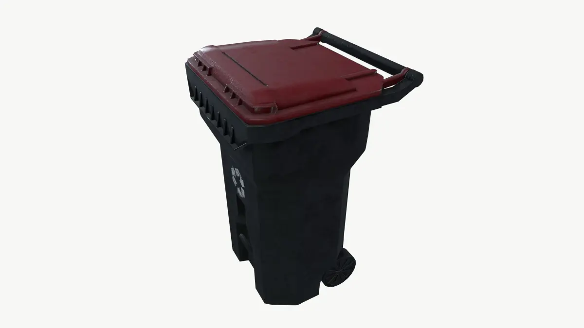 - This trash can features a vibrant red lid that not only adds a pop of color to any street setting but also serves as a clear visual cue for waste disposal.