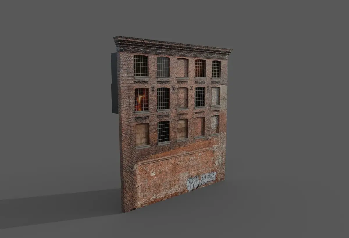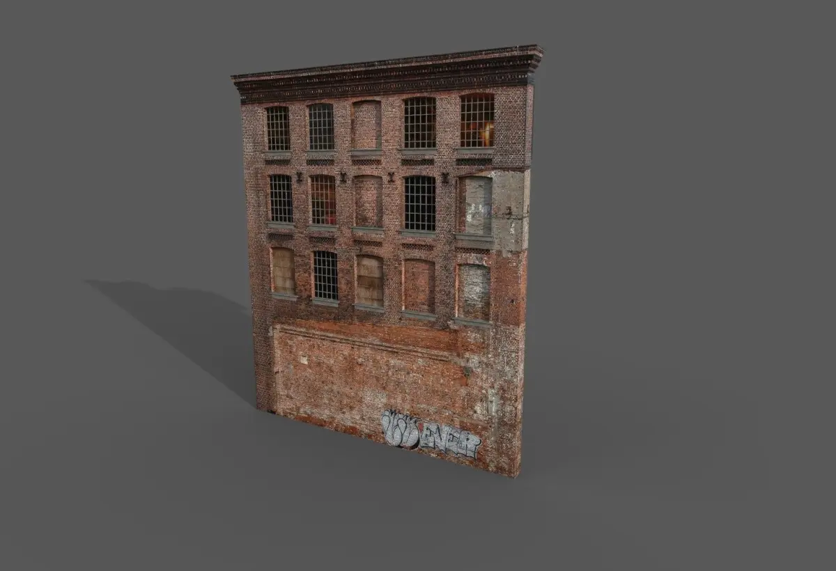 3 d model wall for street environment 3234 polygons Met-rgh textures1 set -40962 set - 1024